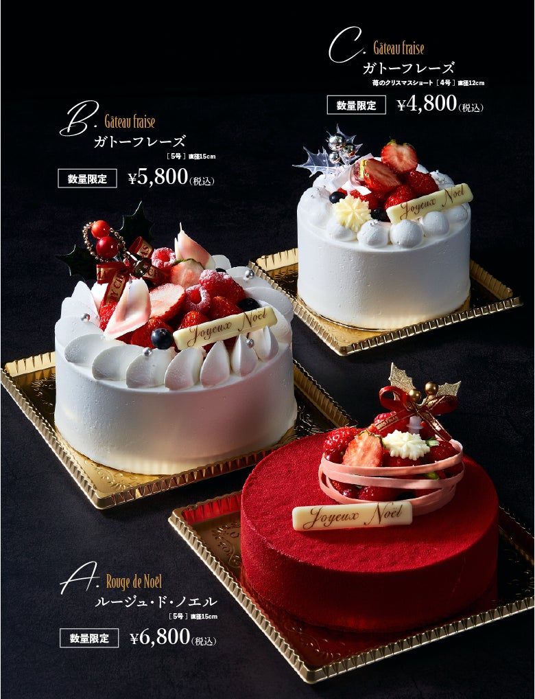 ※ A.「ルージュ・ド・ノエル」のお渡し日は、12月23日~25日のみ