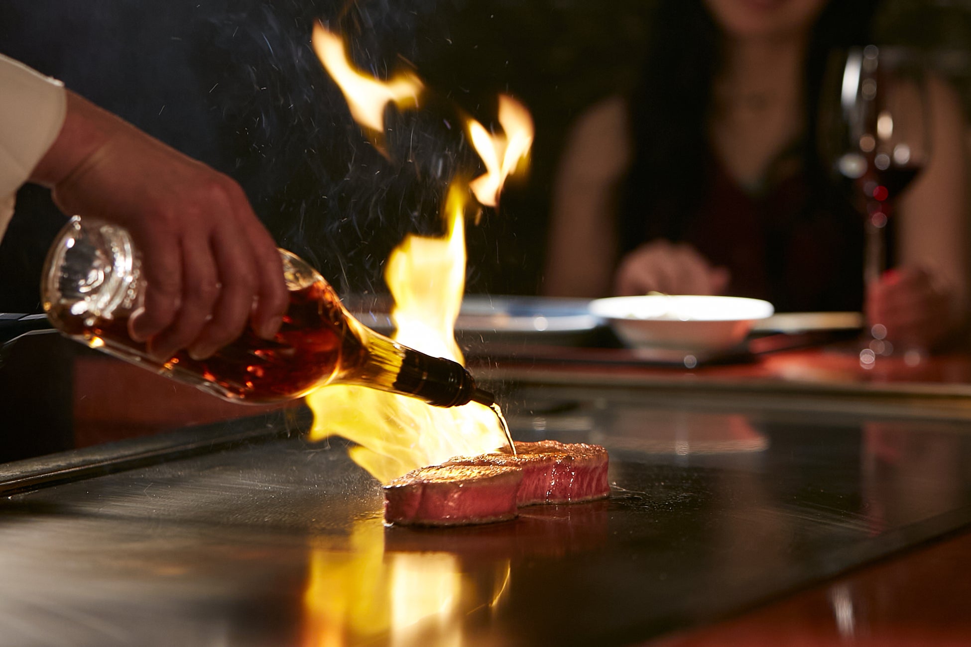 音と香り、炎の演出が特別な夜をよりドラマティックに演出する鉄板焼きのクリスマス。