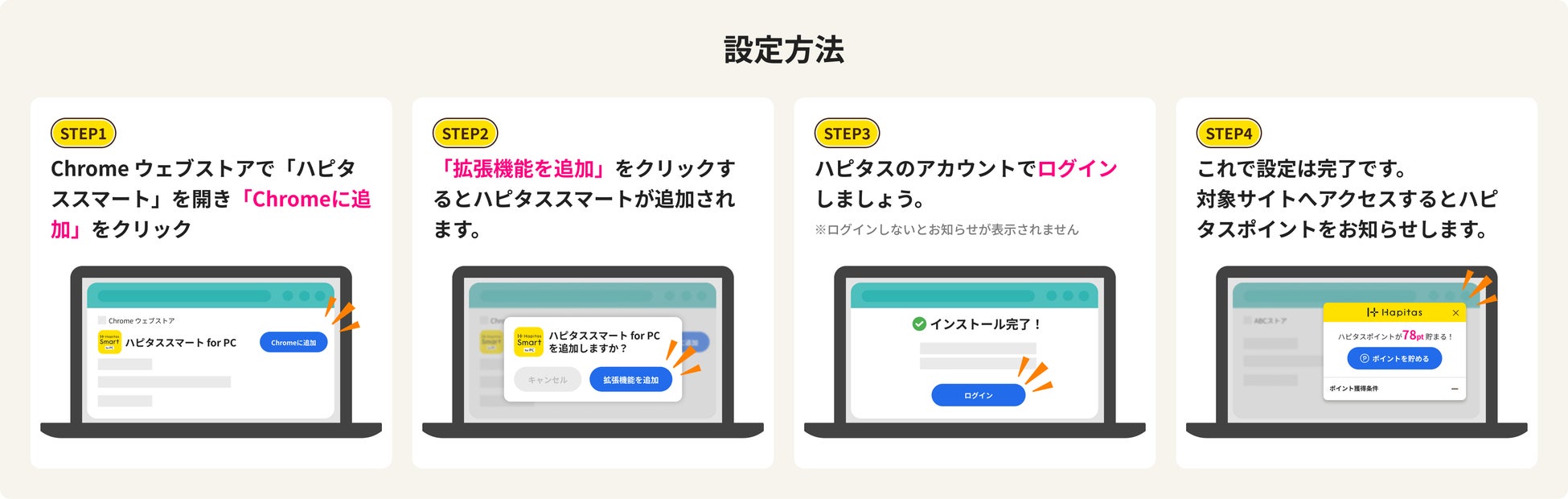 Chrome ウェブストアから「ハピタススマート for PC」をインストール