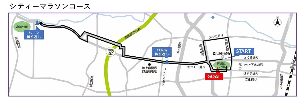 郡山市の主要道路である、内環状線やうねめ通り、国道49号をコースに含め、市街地を走る区間を増やします。