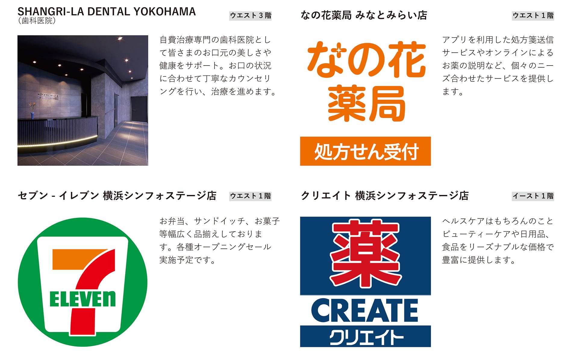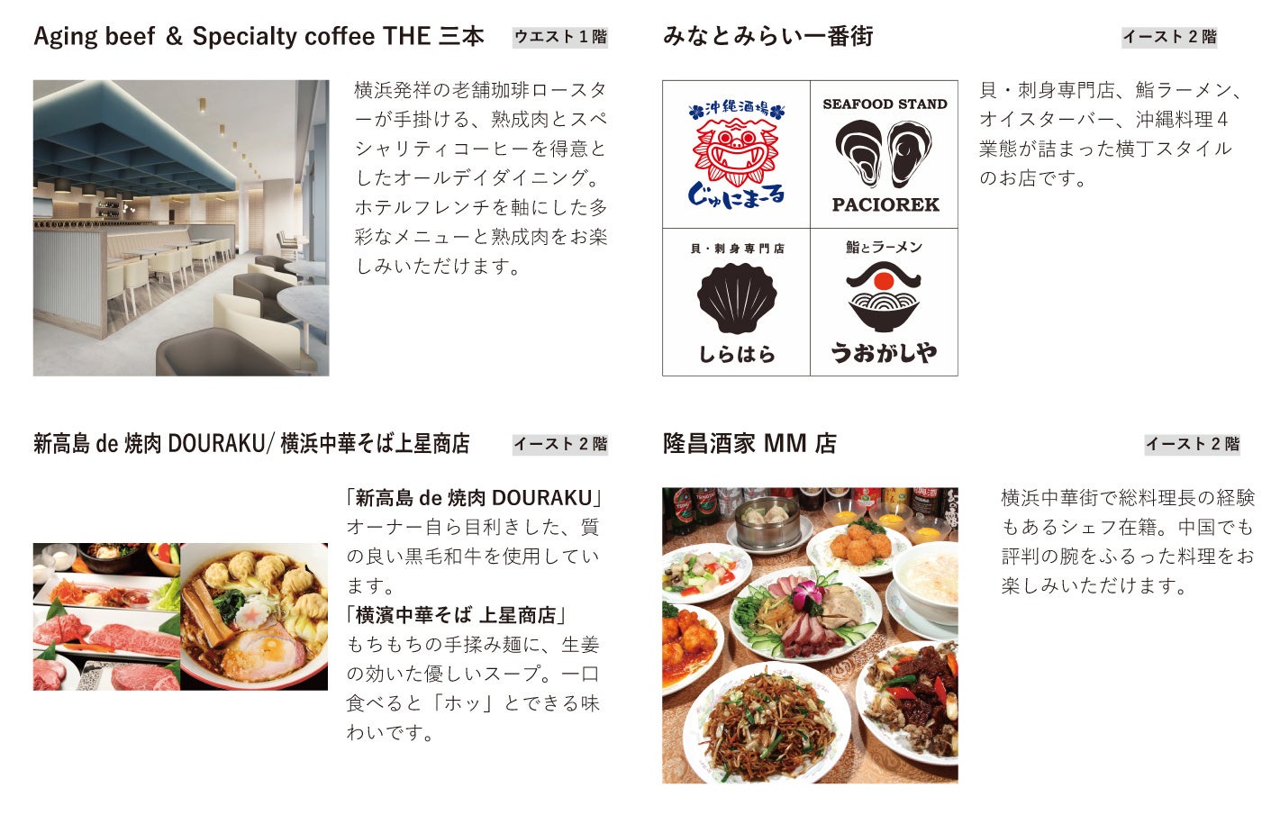 各店の詳細や営業時間は、横浜シンフォステージ公式WEB サイトをご覧ください。