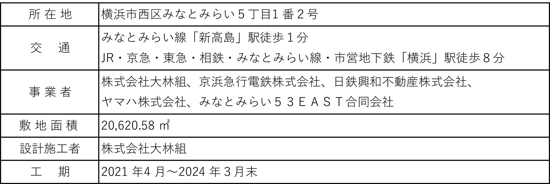 株式会社大林組(本社:東京都港区、代表取締役社長兼CEO:蓮輪賢治)、京浜急行電鉄株式会社(本社:横浜市西区、代表取締役社長:川俣幸宏)、日鉄興和不動産株式会社(本社:東京都港区、代表取締役社長:三輪正浩)、ヤマハ株式会社(本社:静岡県浜松市、代表執行役社長:山浦敦)、みなとみらい53EAST合同会社(※1)の5社(以下、当グループ)共同開発による、「横浜シンフォステージ(YOKOHAMA SYMPHOSTAGE®)」(みなとみらい21 中央地区53 街区開発事業)が、2024 年3 月31 日に竣工しました。