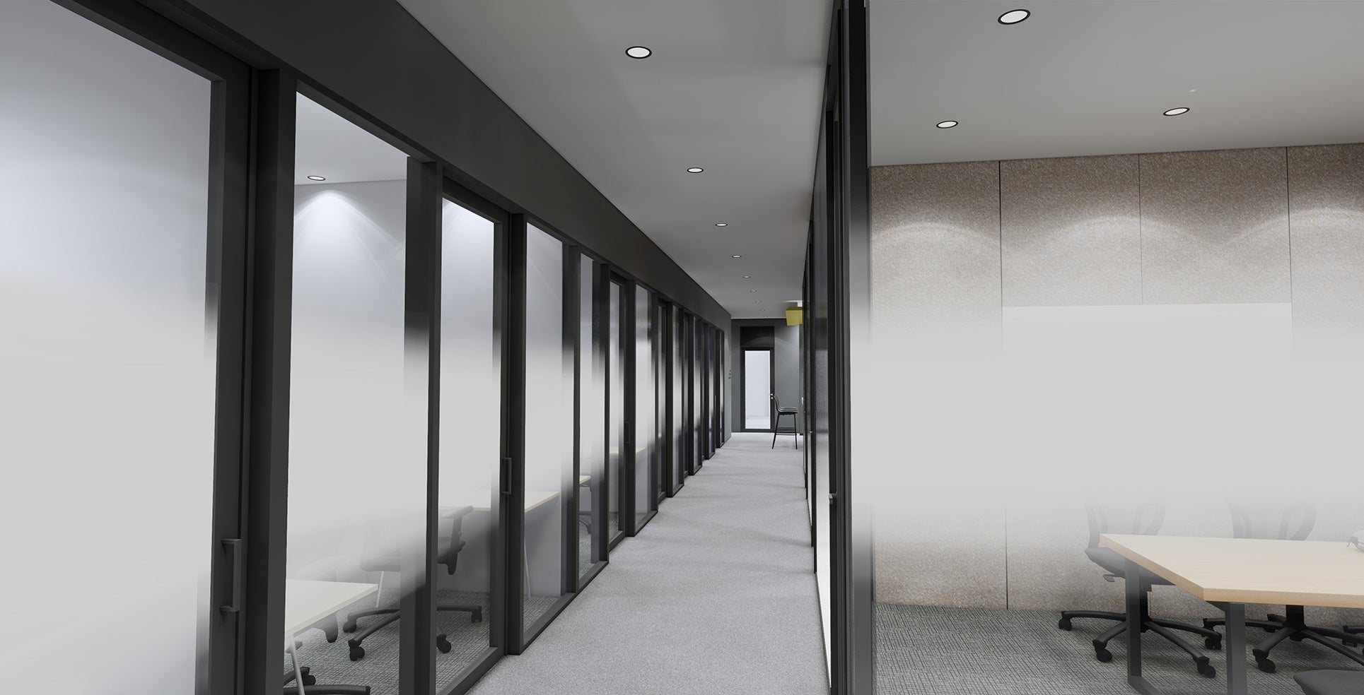 集中して作業できる個室をさまざまな広さで13室用意しました。オフィス の内装やオフィス家具、インターネット環境など、必要なオフィス設備を完備しています。