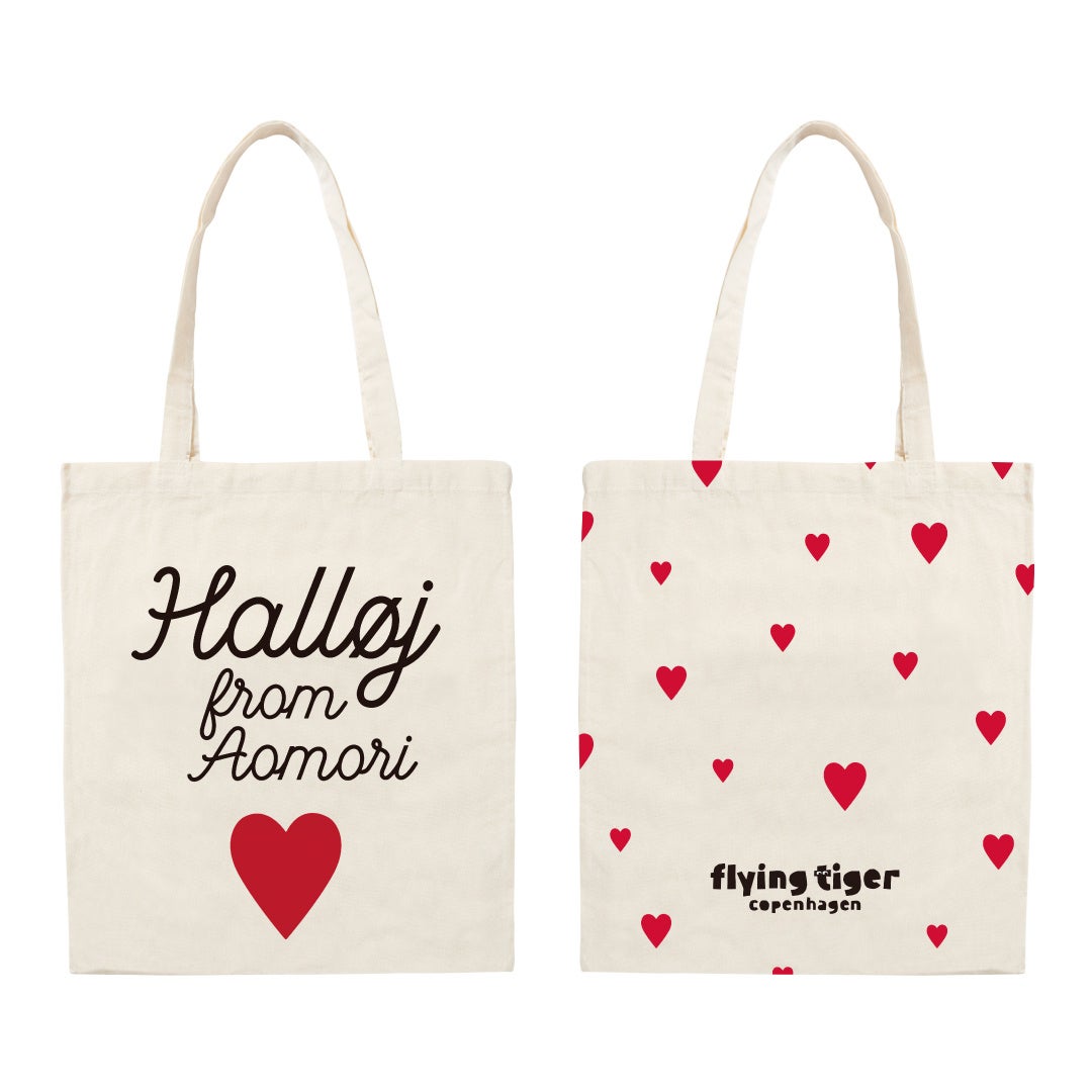 Flying Tiger Copenhagenでは、各店限定の『ストアリミテッドバッグ』を販売しています。〈青森ELMストア〉では、デンマークの人たちが大好きなモチーフ”ハート”と、メッセージ“Halløj from Aomori” (デンマーク語で「青森からこんにちは!」)を配したバッグを展開。3/8(金)のオープン日、先着100名様に、この『ストアリミテッドバッグ』をプレゼントします。