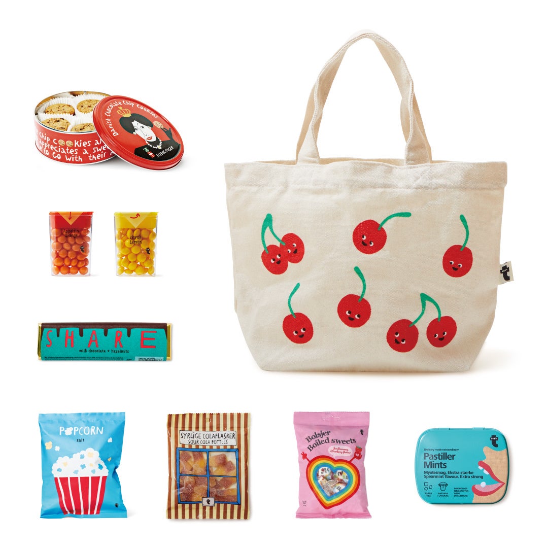 【内容:全9商品】チョコチップクッキー/ランチトートバッグ/タブレット(オレンジ)/タブレット(レモン)/チョコバー(ヘーゼルナッツ)/ポップコーン(ソルト)/グミ(コーラ)/レインボーキャンディ(ストロベリー)/スペアミントタブレット