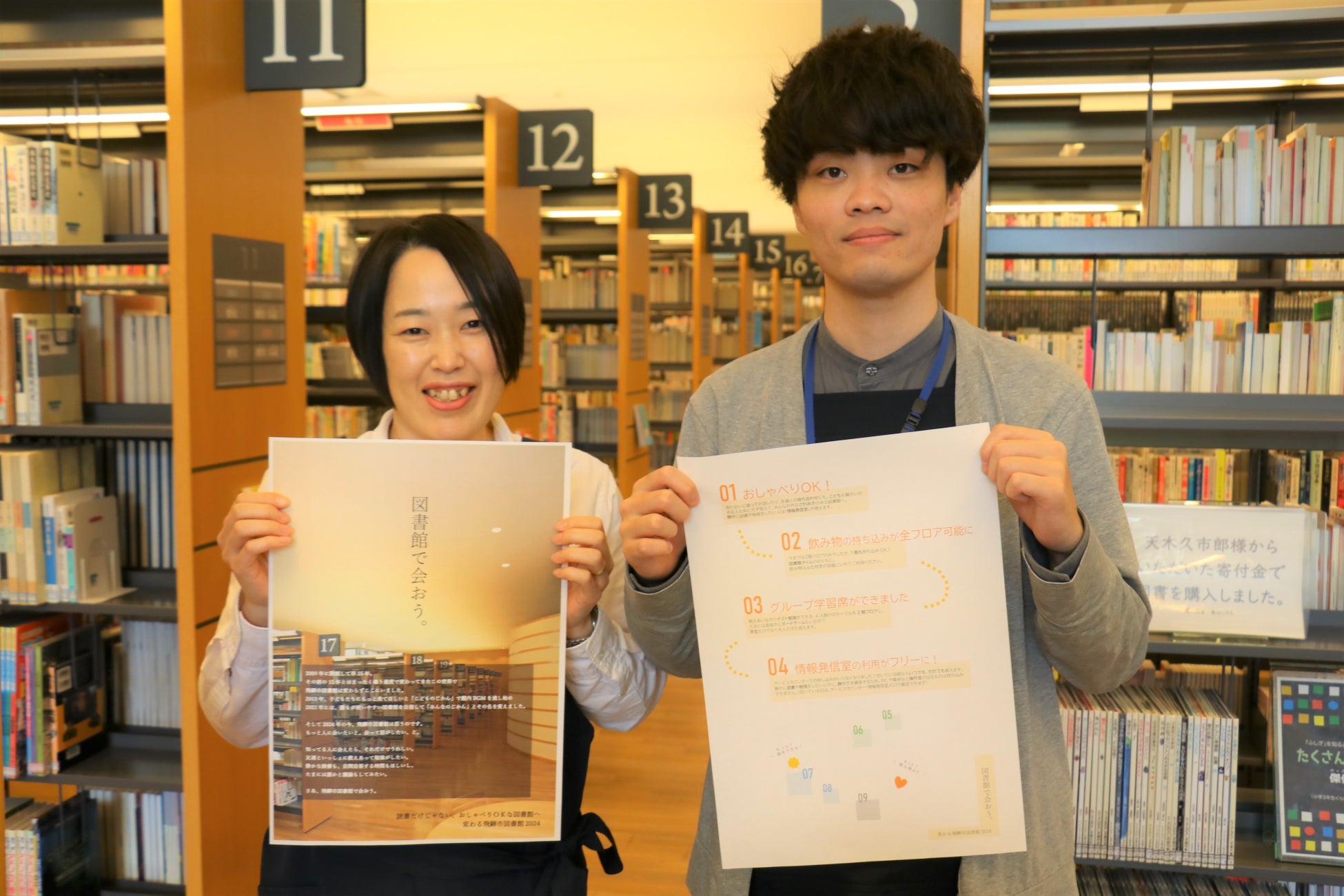 このほか、2023年には地元高校生の提案から「図書館カフェ」と題して、学生を対象にコーヒー等の無料サービスを日付を限定して開催し、テスト期間中などは多くの学生たちが利用しました。