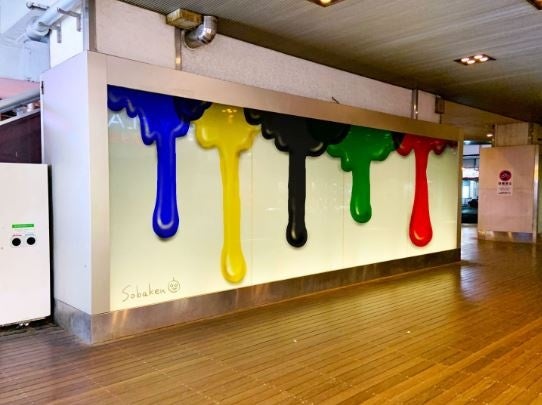 アーティスト・傍嶋賢による、まるで5色の絵具が垂れたように見える図像。