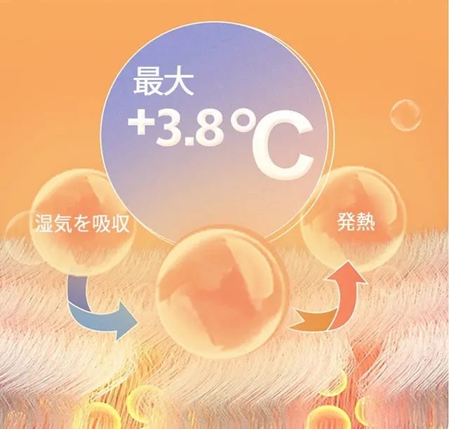 この技術により、継続的に湿気を吸収し発熱し、温度を3.8℃上昇させることができます。