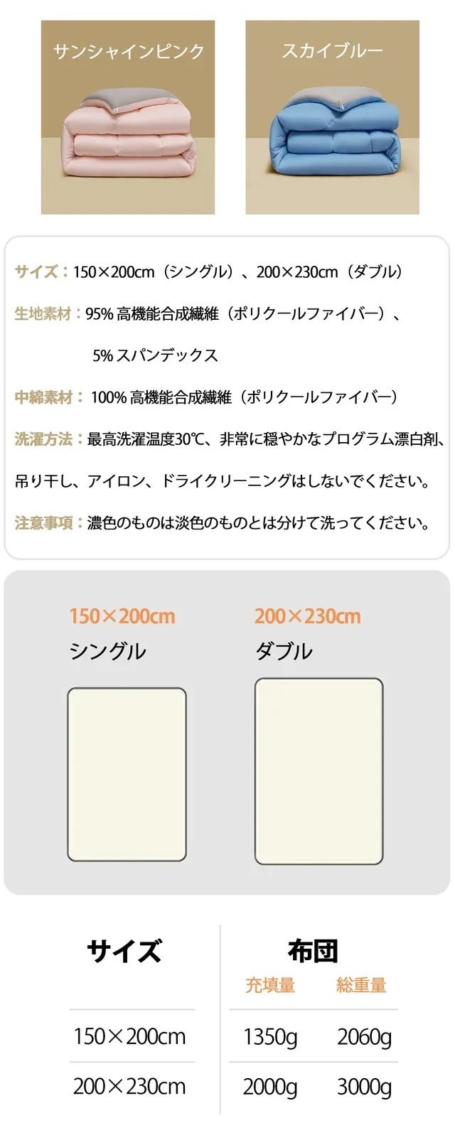 被るだけで3.8℃暖かくなる冬用抗菌掛け布団