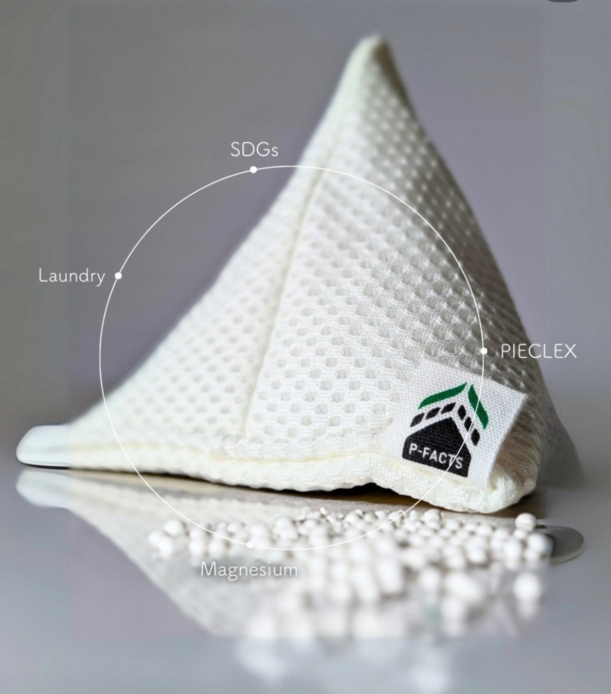 2024年に発売された、「洗たくマグちゃん with ピエクレックス」は、植物由来繊維ピエクレックスを袋に採用しています。ピエクレックスが主導する循環インフラ「P-FACTS」(ピーファクツ)※②に対応しており、使用後の製品は回収され、生地は微生物によって堆肥化される循環設計です。