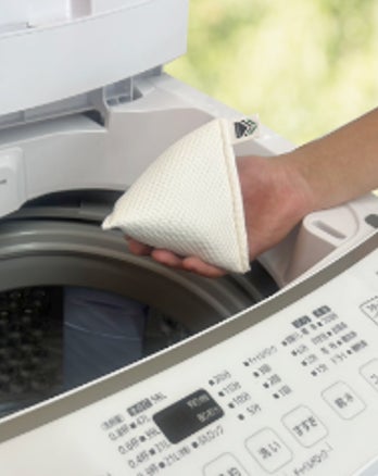 「洗たくマグちゃん®」は、マグネシウムを活用した洗濯補助用品です。界面活性剤、香料、蛍光増白剤、漂白剤といった従来の洗剤に含まれる成分を一切使用しておらず、環境にやさしい※③点が特徴です。洗濯機に「洗たくマグちゃん®」を入れるだけで、マグネシウムが水と反応し、弱アルカリ性の水を生成します。「洗たくマグちゃん®」を使うことにより洗濯排水汚染の軽減を目指しています。