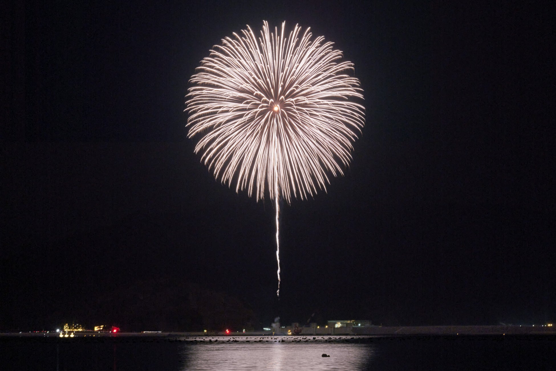白一色の花火「白菊」は、シベリアで抑留され現地で命を落とした戦友を弔うために、新潟県長岡市の花火師、故・嘉瀬誠次さんによって作られました。ロシアで打ち上げられたのがはじまりで、その後は長岡空襲があった8月1日や終戦記念日に長岡市内で打ち上げられています。そして2020年からは嘉瀬誠次さんのご子息である嘉瀬晃さんのご尽力で、東日本大震災の犠牲者の慰霊のために釜石市の海岸でも打ち上げていただいています。