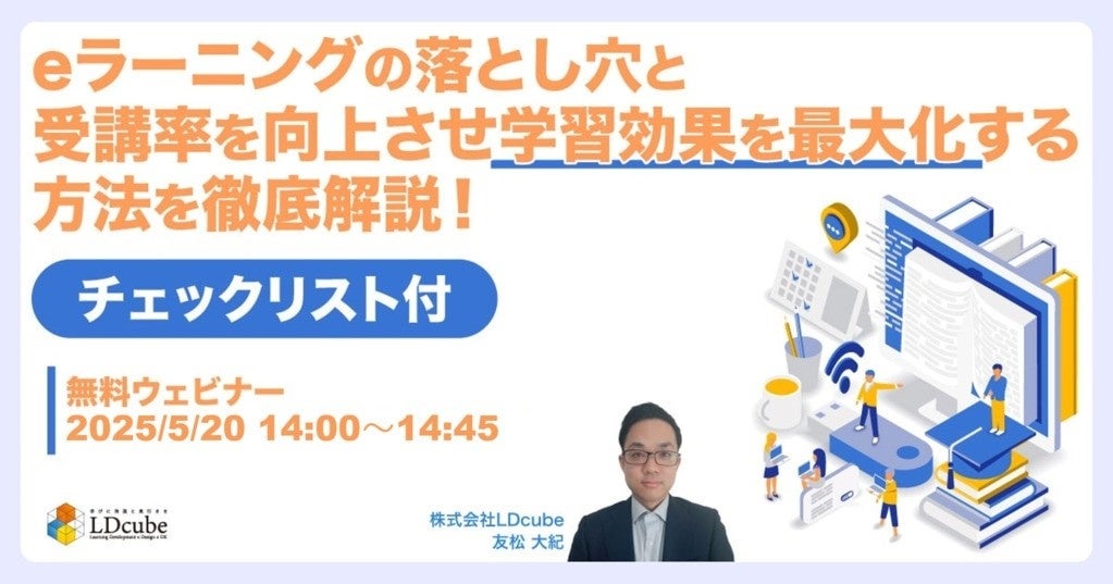 LDcube、「【チェックリスト付】eラーニングの落とし穴と、受講率を向上させ学習効果を最大化する方法を徹底解説!」無料ウェビナーを開催(5月20日14:00~14:45)