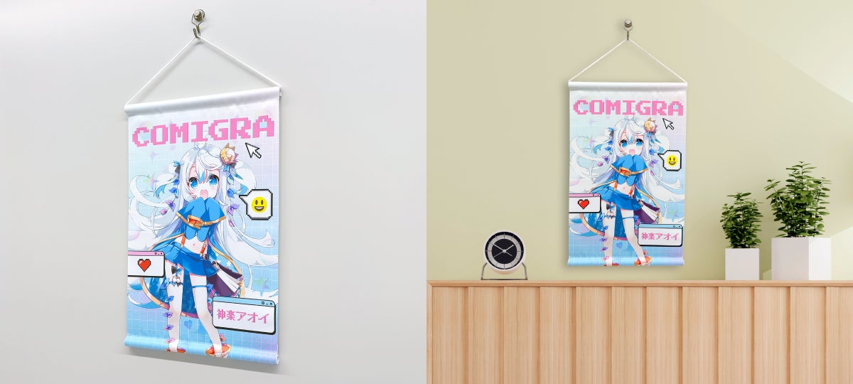 この度、グッズシミュレーターで新たに「布タペストリー」の制作が可能となりました。オリジナルグッズとして人気のアイテムが、1点から作成可能です。