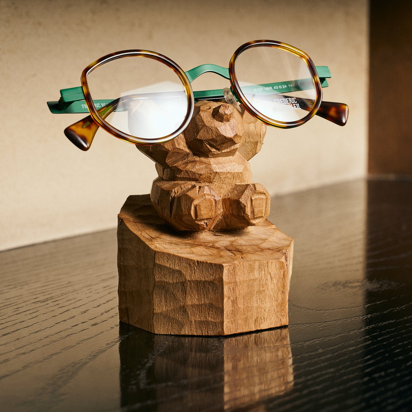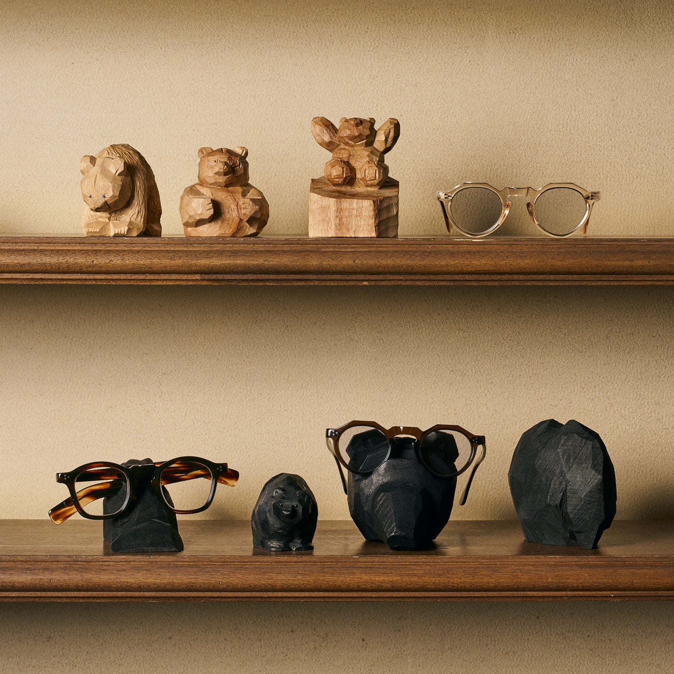 CABINET OF CURIOSITIESにて開催の「ヒビヤクマーケット」から、木彫り熊作家「炎熊」「ギザ熊」とCONVEXの限定コラボレーションアイテム。1体ずつ個性があり、違った表情を見せてくれる熊たち。ご自身の特別な眼鏡の居場所となる、特別な熊との出会いをお楽しみください。