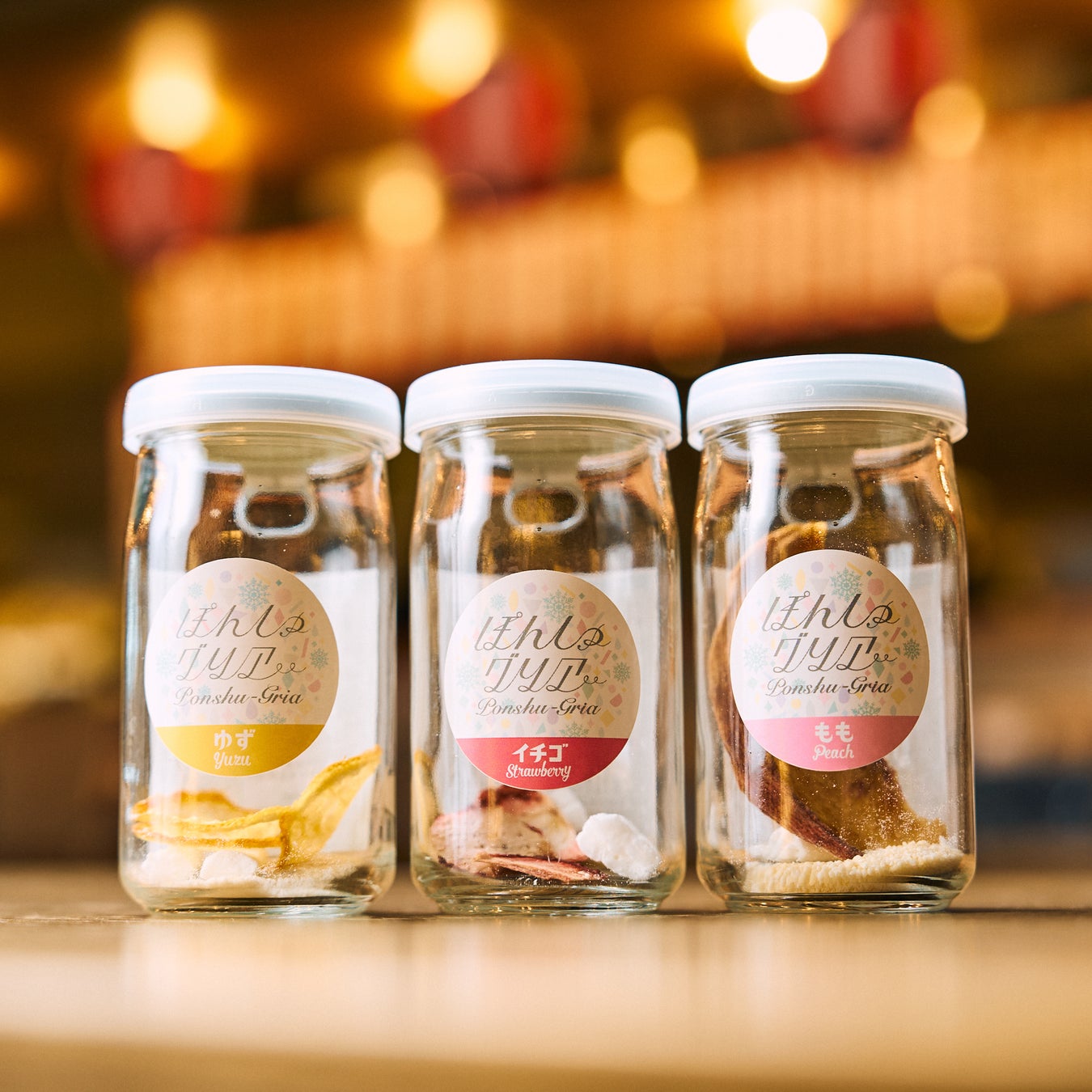 『「地域を食べる」をデザインし、ずっとつながる地域の力になる。』新潟県長岡市の株式会社FARM8の国産フルーツを使ったあたたかいフルーツカクテル3種類〈もも・ゆず・いちご〉をご準備しました。