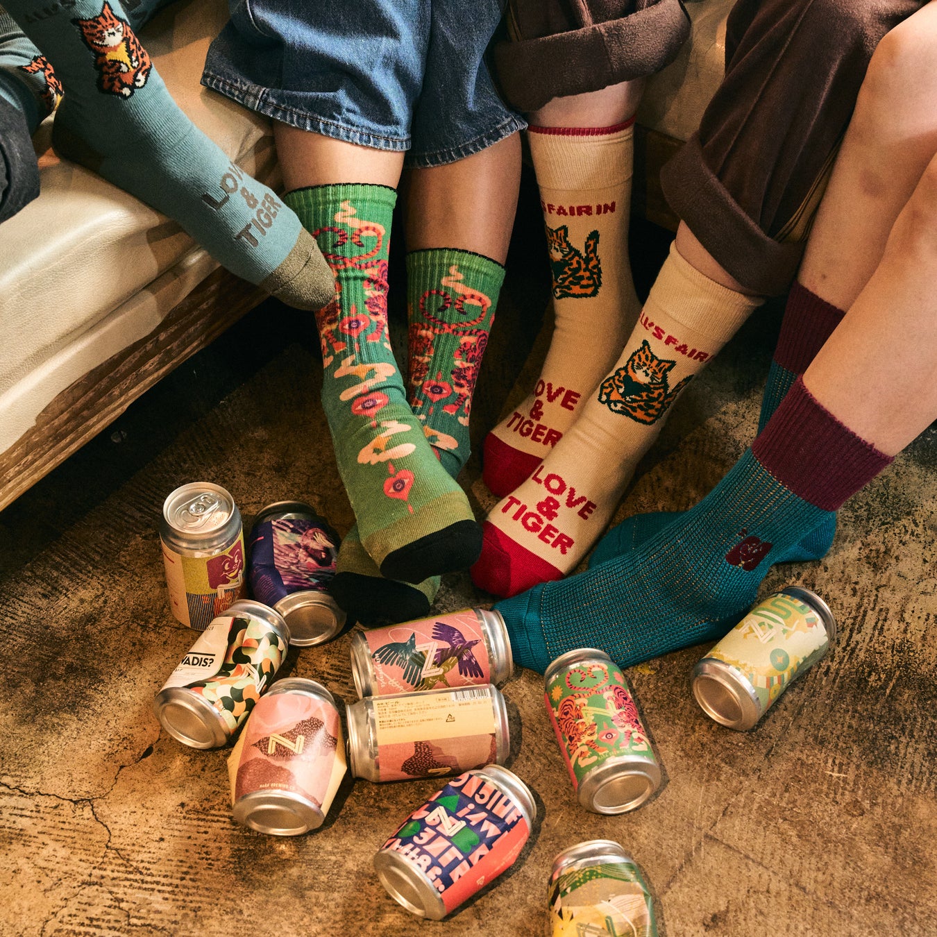 奈良醸造からコラボレーションビール「LOVE&TIGER」と、HOiSUMからはコラボレーションビールのデザイン柄オリジナルソックスを販売します。