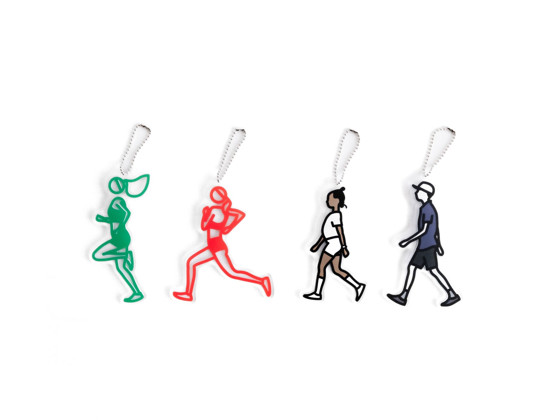 2025年9月からGINZA SIXの中央吹き抜けに展示されている≪Marathon. Women.≫は、吹き抜け空間に浮かぶように設置されたLEDサイネージを舞台に、カラフルでシンプルな線で描かれたランナーたちの姿がそれぞれの速度で駆け抜けていくインスタレーション。展示環境そのものに強い関心を持ったジュリアン・オピーが、賑やかな空間において意味を持ち、かつ自然に溶け込むような作品を目指して制作した、自身初の「宙に浮かぶ」映像の大型インスタレーションとなる意欲作です。「走る」という人間の本能的な動きが空間全体に浸透し、訪れる人々に没入感と新たな気づきをもたらす本作は、GINZA SIXの中央吹き抜け空間の特性を生かし、フロアを移動しながら上下左右さまざまな角度から鑑賞できる、同空間初の“動き”のある作品です。