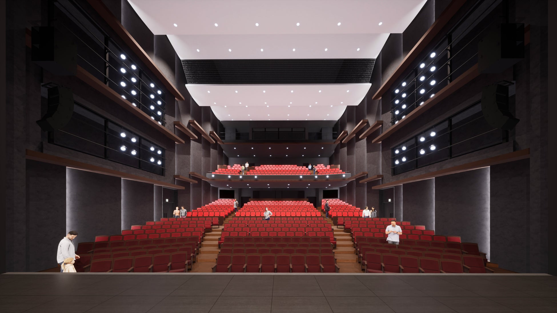 客席600席程度。多機能、高機能で多様な公演に対応可。