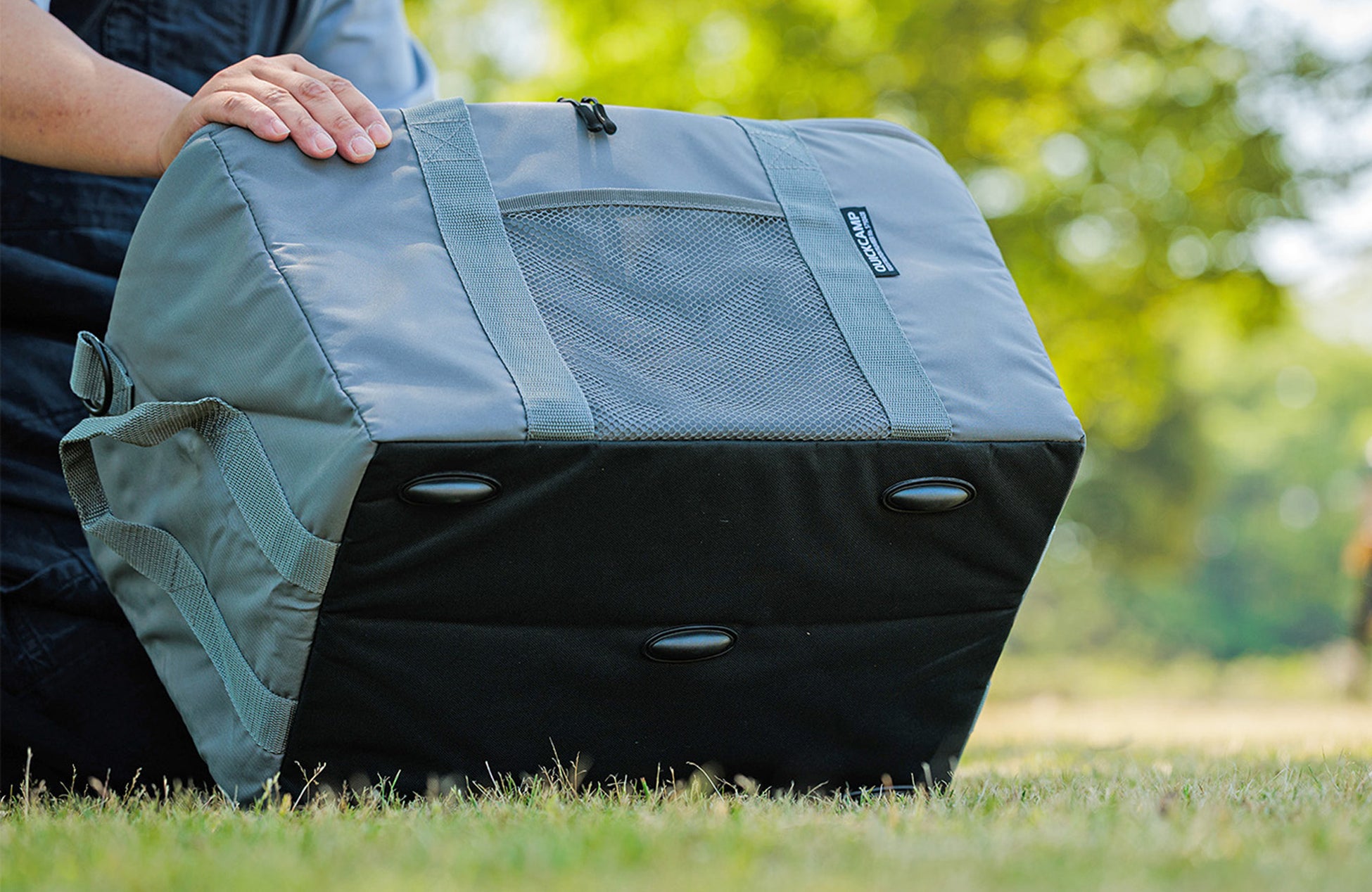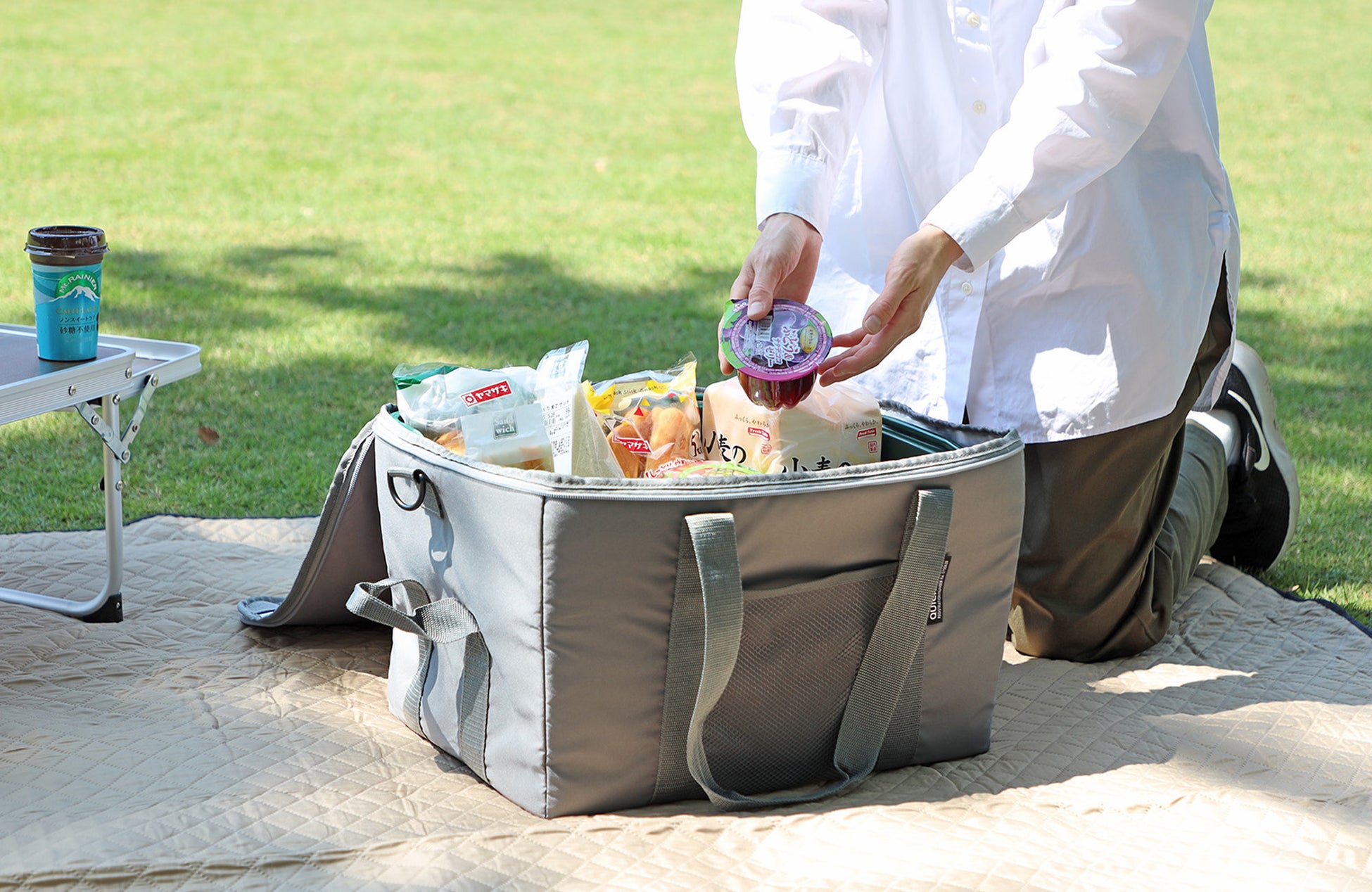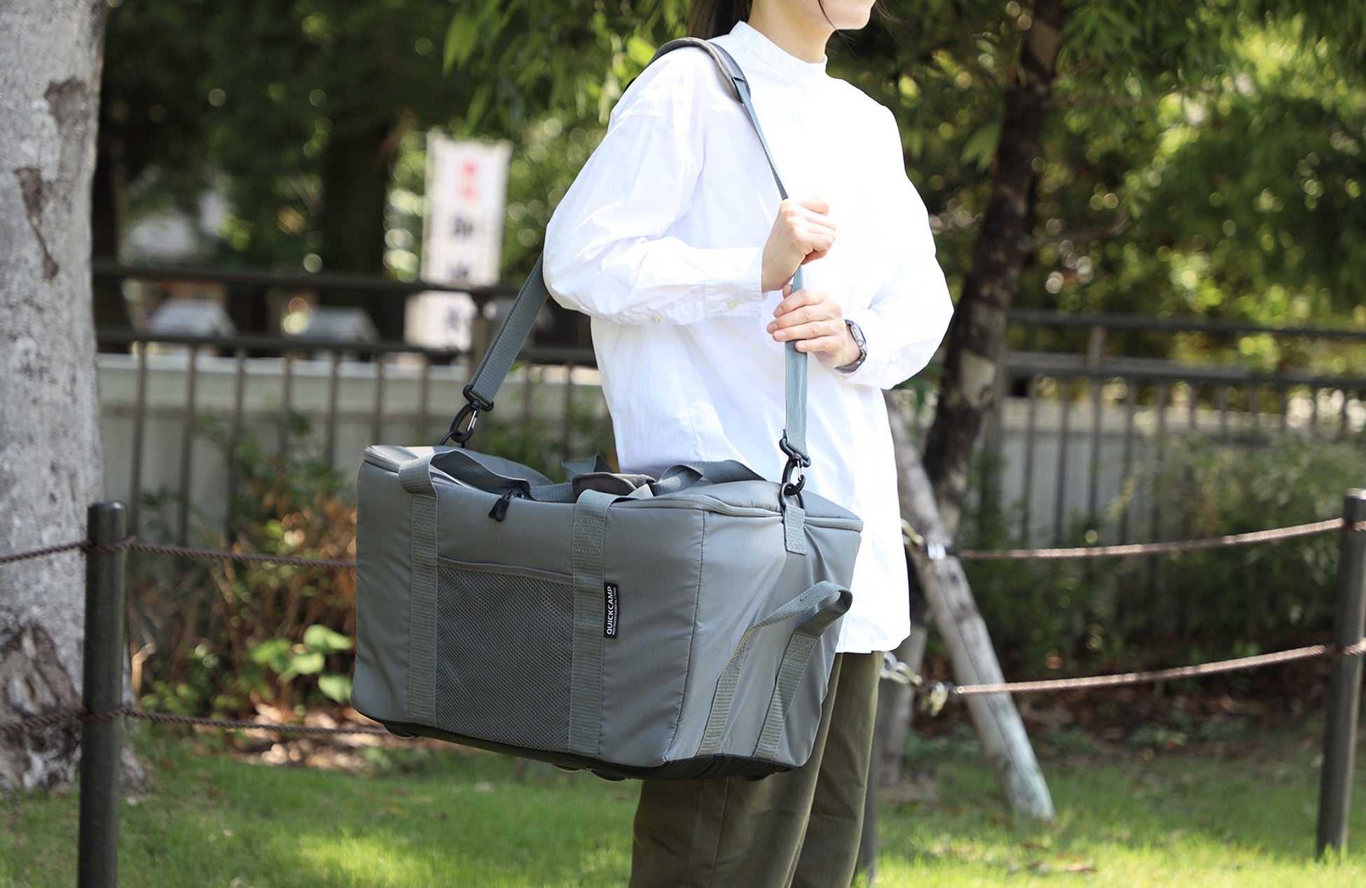 家とスーパーをただ往復するだけではなく、買い物帰りに公園やカフェにまで気持ちが向く、日常とアウトドアを心地よくつなぐ新しいスタイルの保冷バッグです。
