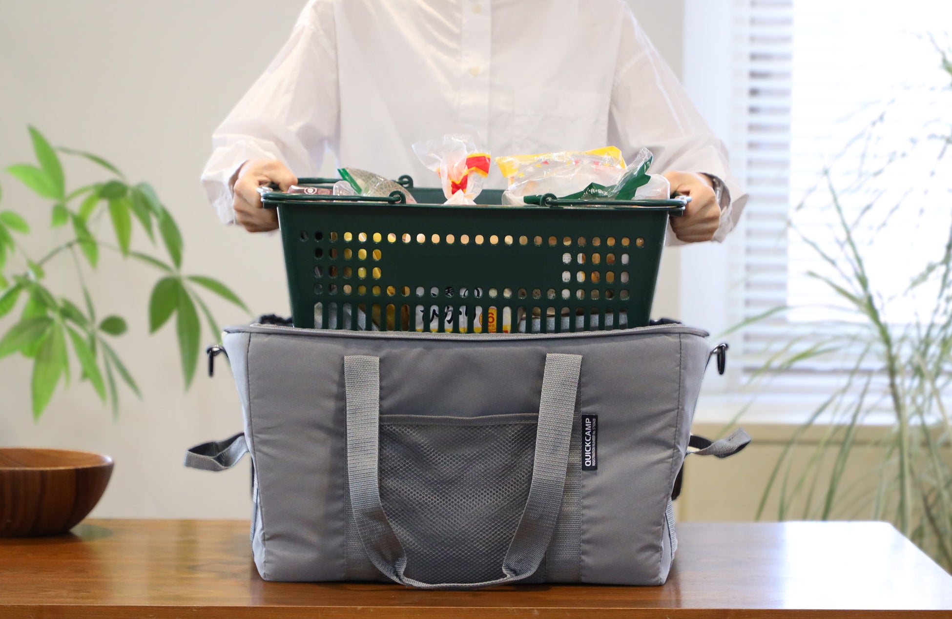 そんな手間がなくなり、マイかごを丸ごとマイバスケットクーラーに入れて持ち運びでき、レジ後の面倒ゼロでスマートにお買い物が楽しめます。