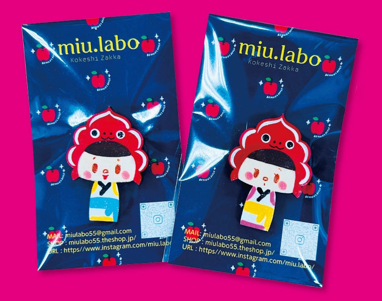 こけし雑貨のmiu.laboさんがひとつひとつ手づくりしているブローチです。