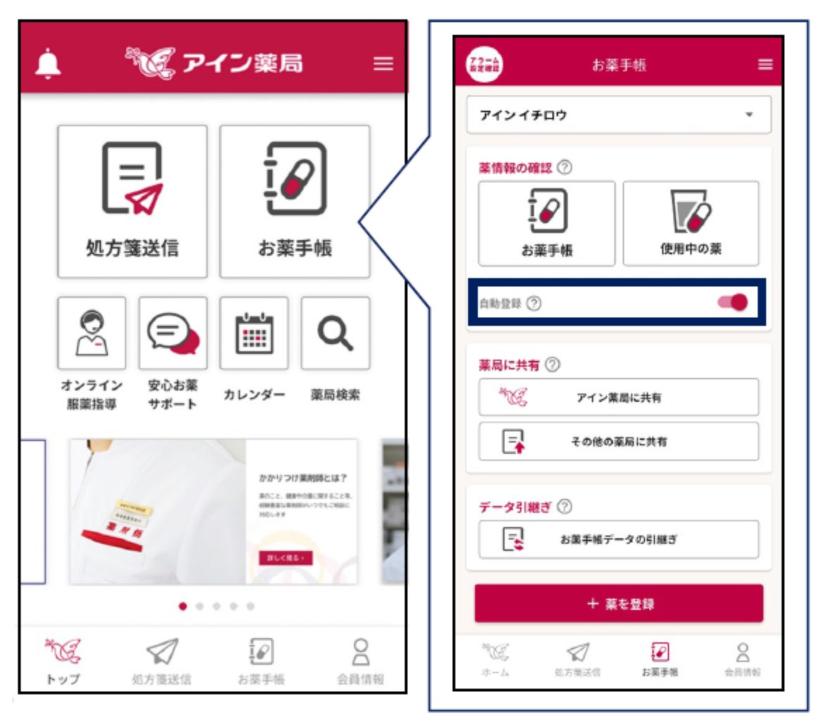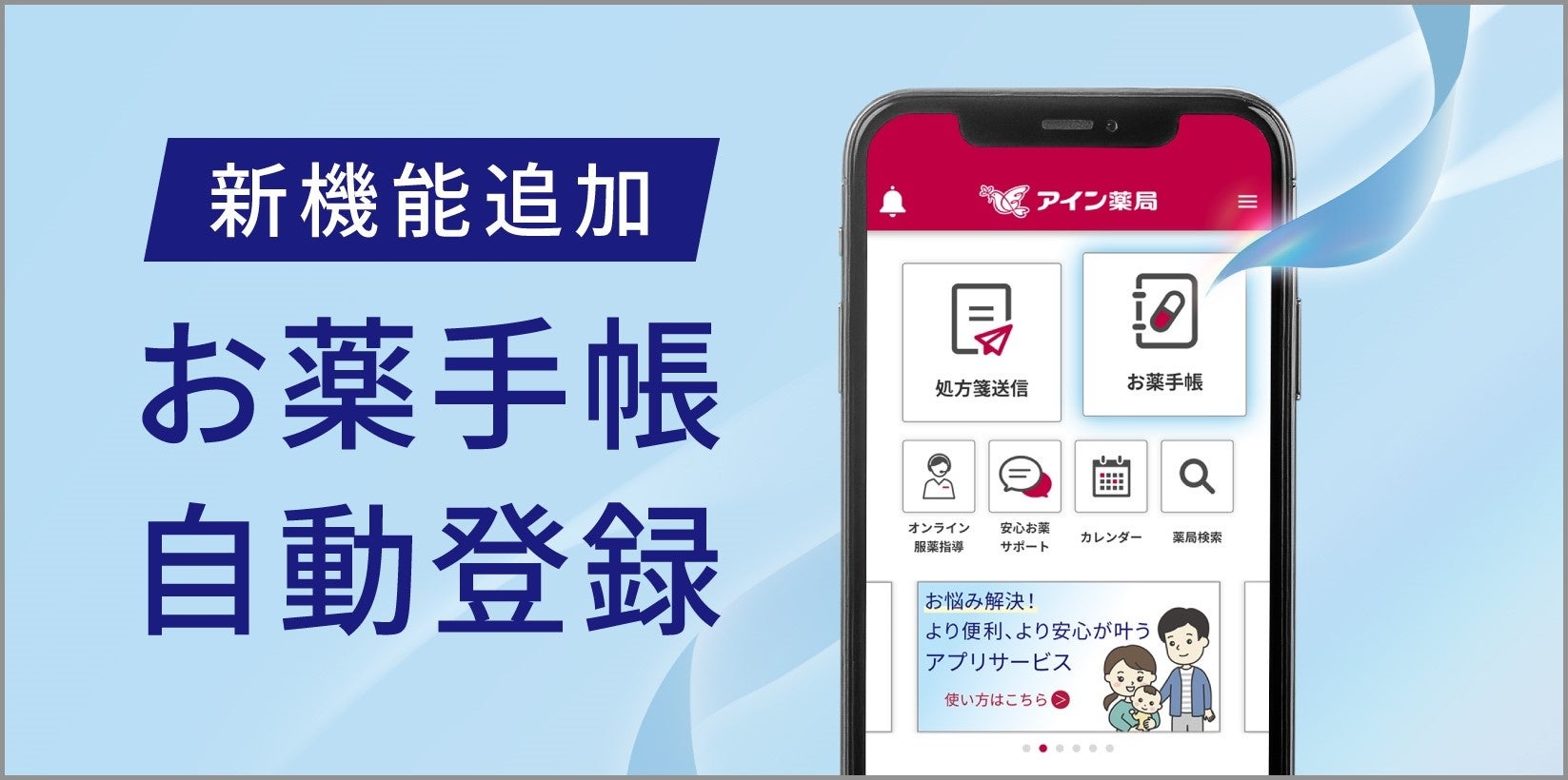 公式アプリ いつでもアイン薬局 「お薬手帳」への「自動登録」機能 追加、スムーズな薬の管理へ