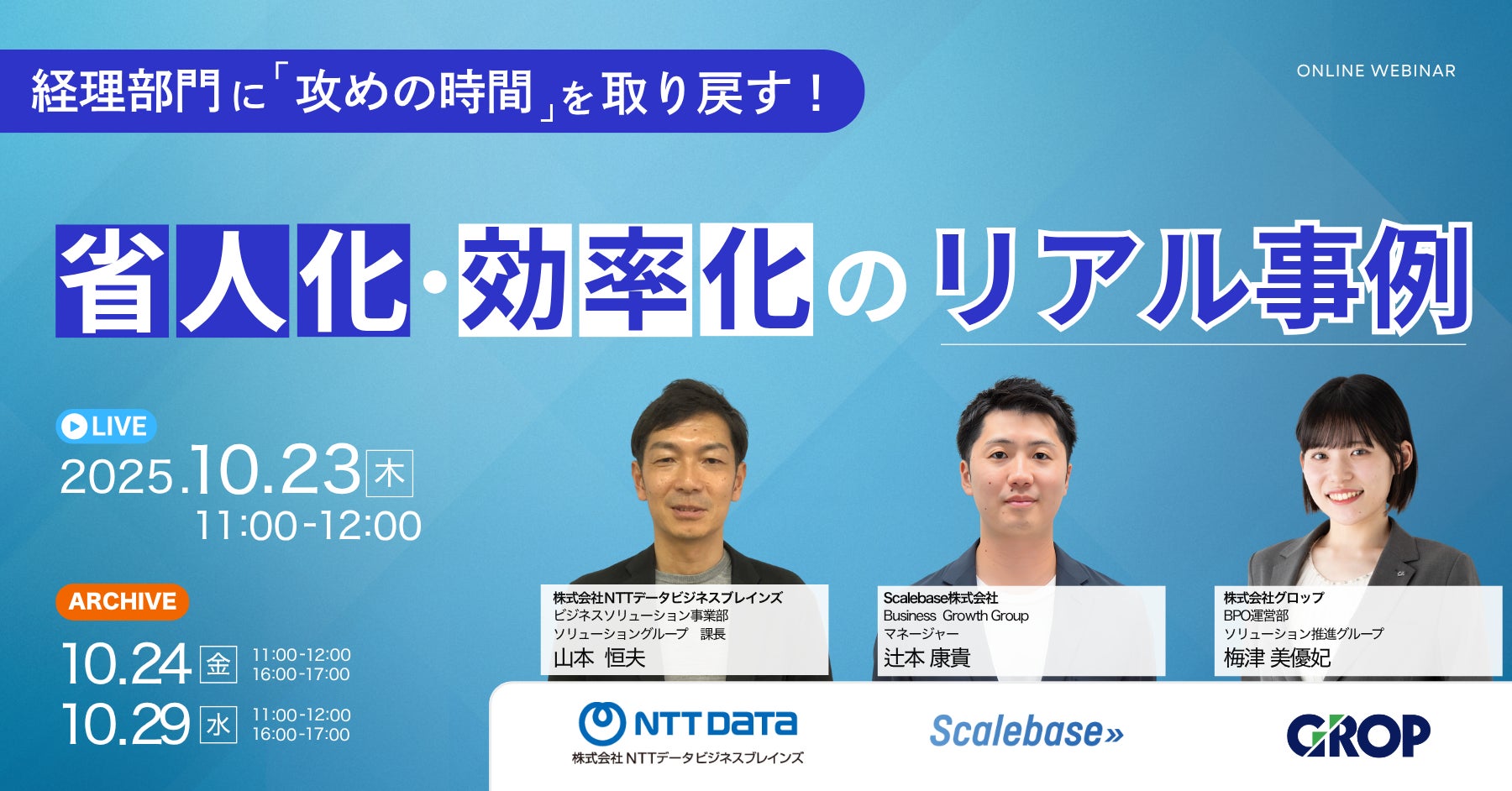 株式会社NTTビジネスブレインズ様、Scalebase株式会社様、株式会社グロップの3社共催ウェビナーを開催!経理部門でお悩みのある方は必見のウェビナーです☆