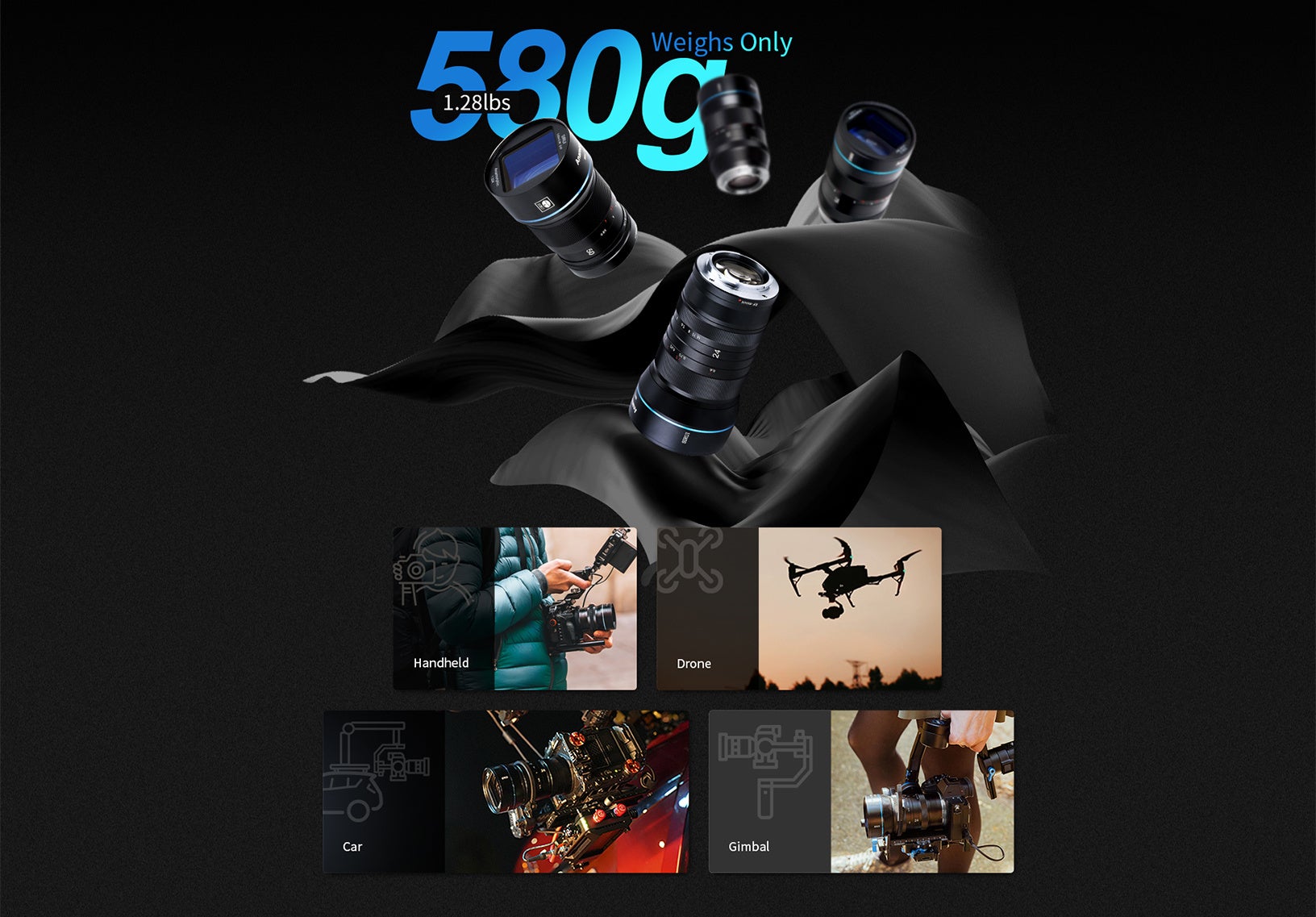 このレンズは軽量なセットアップ、例えばジンバルに取り付けて使用することで、従来の大型アナモルフィックレンズでは難しい柔軟なアングルを自在に追求できます。