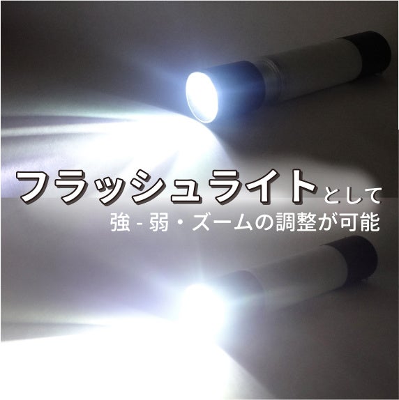フラッシュライトの部分は、ズームさせることで最長100m先まで照らすことが可能です。
