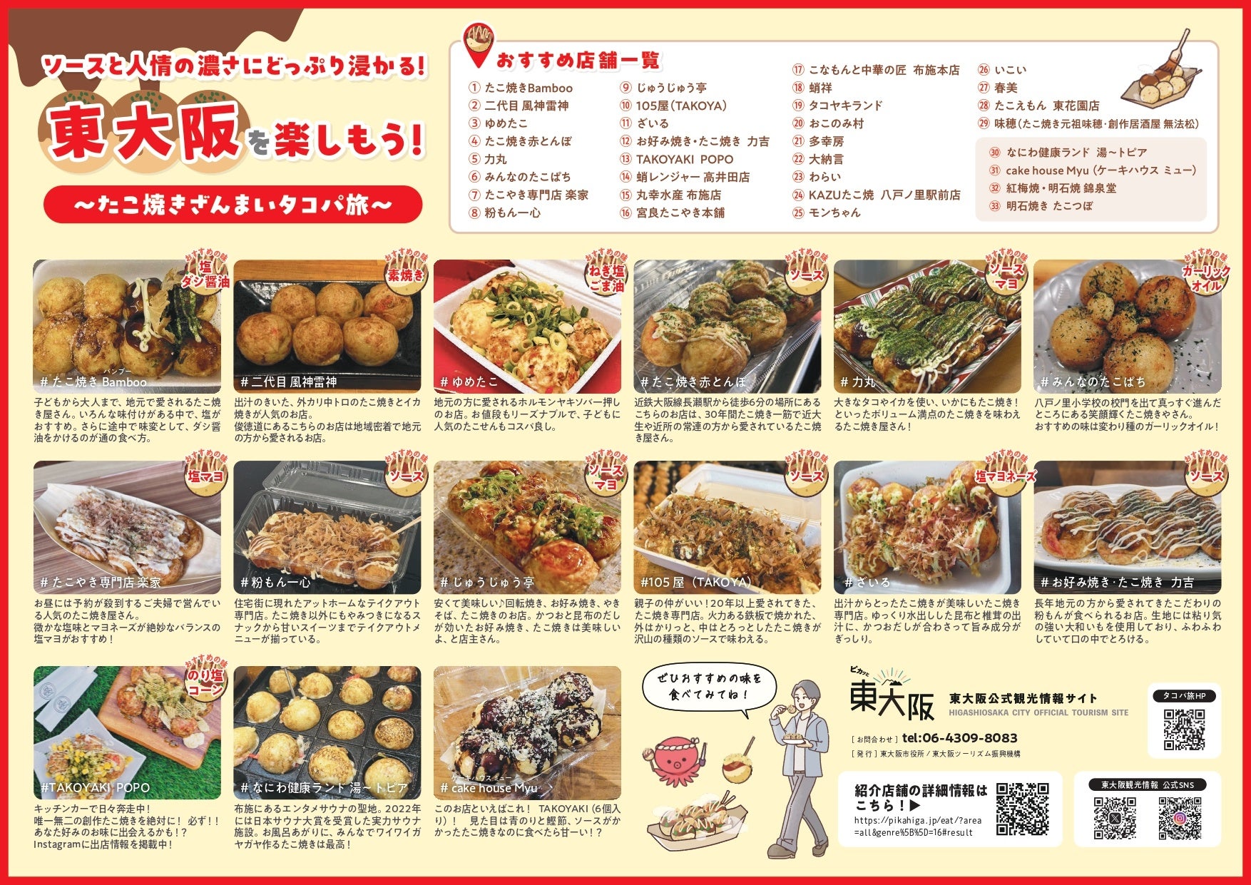 「タコパ旅 東大阪」まち歩きMAPの第5弾として、市内に約60店舗あるとされるたこ焼き店の中から、一部を紹介するマップを制作しました。これぞホンマの「タコパ旅」!