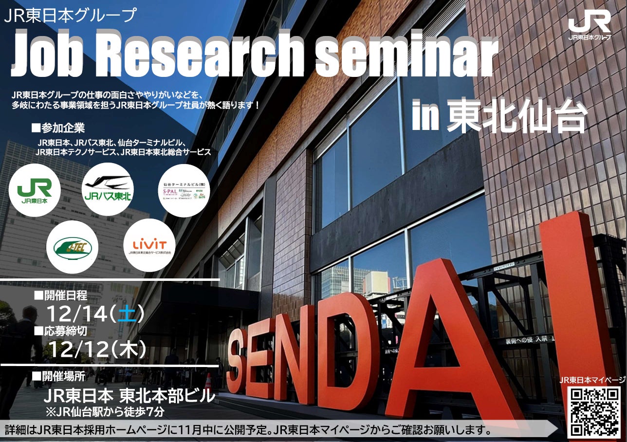 【学生向け就活イベント】JR東日本主催『Job Research seminar in 東北仙台』に出展します!