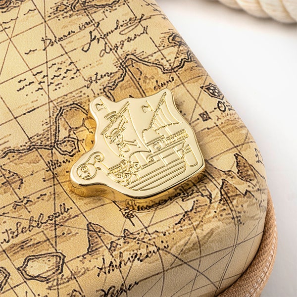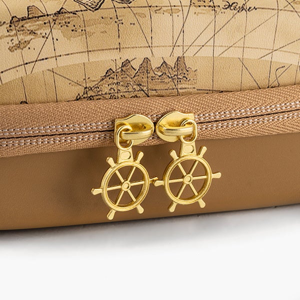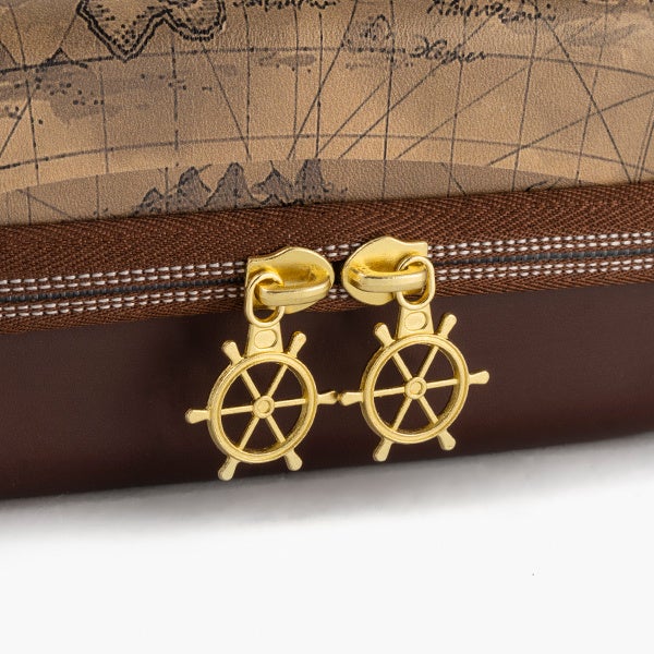 ファスナーには操舵輪のチャームが付いており、細部までこだわったデザインになっています。