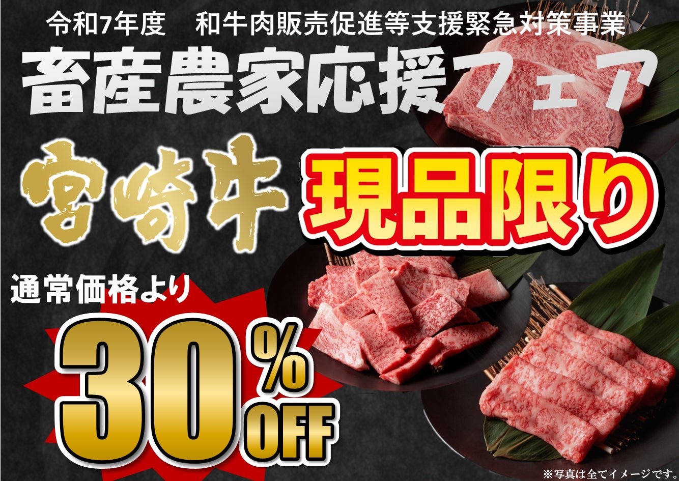 ■畜産農家応援フェア〈現品限り〉宮崎牛が通常価格より30%OFF!