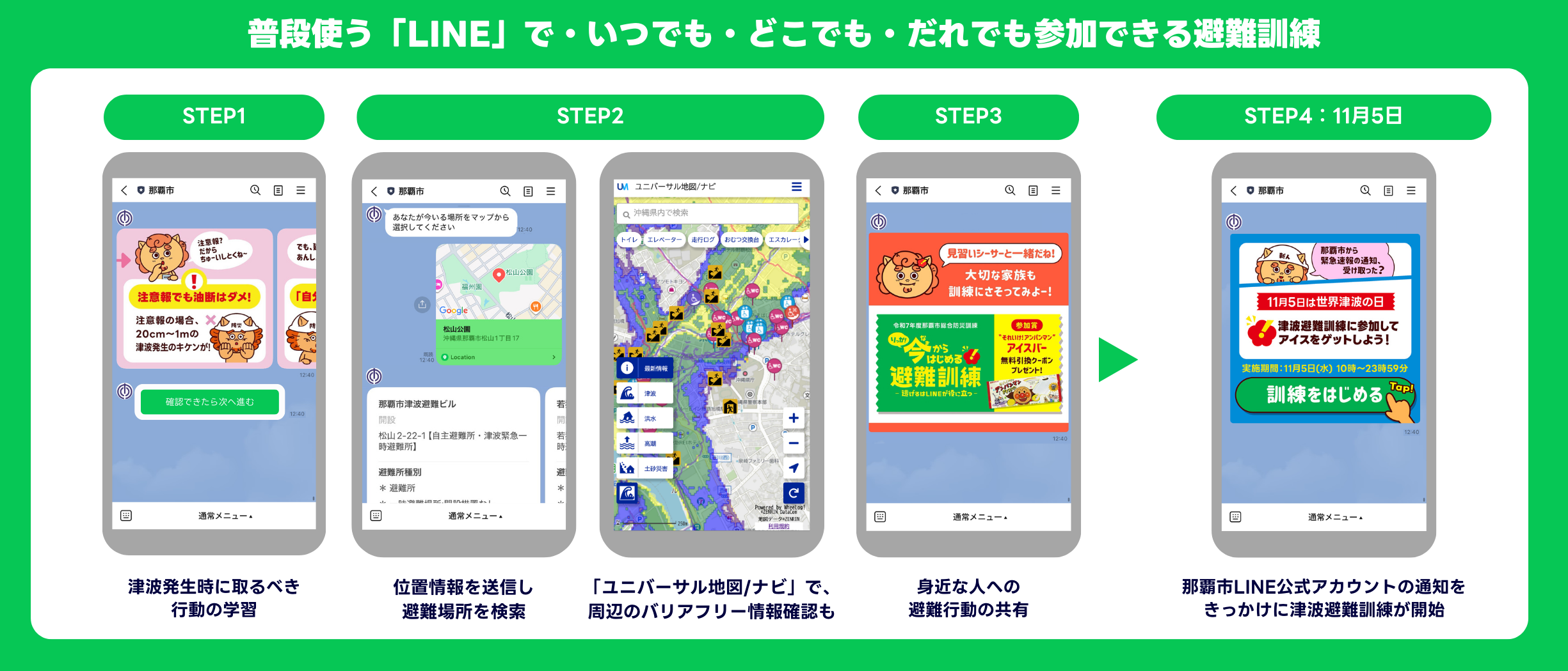 ・LINEヤフーコミュニケーションズ、那覇市、日赤災害救護研、ANA、ANAあきんどと協働で、時間も場所も選ばない、新しい避難訓練「今(なま)からはじめる避難訓練」を「LINE」で実施