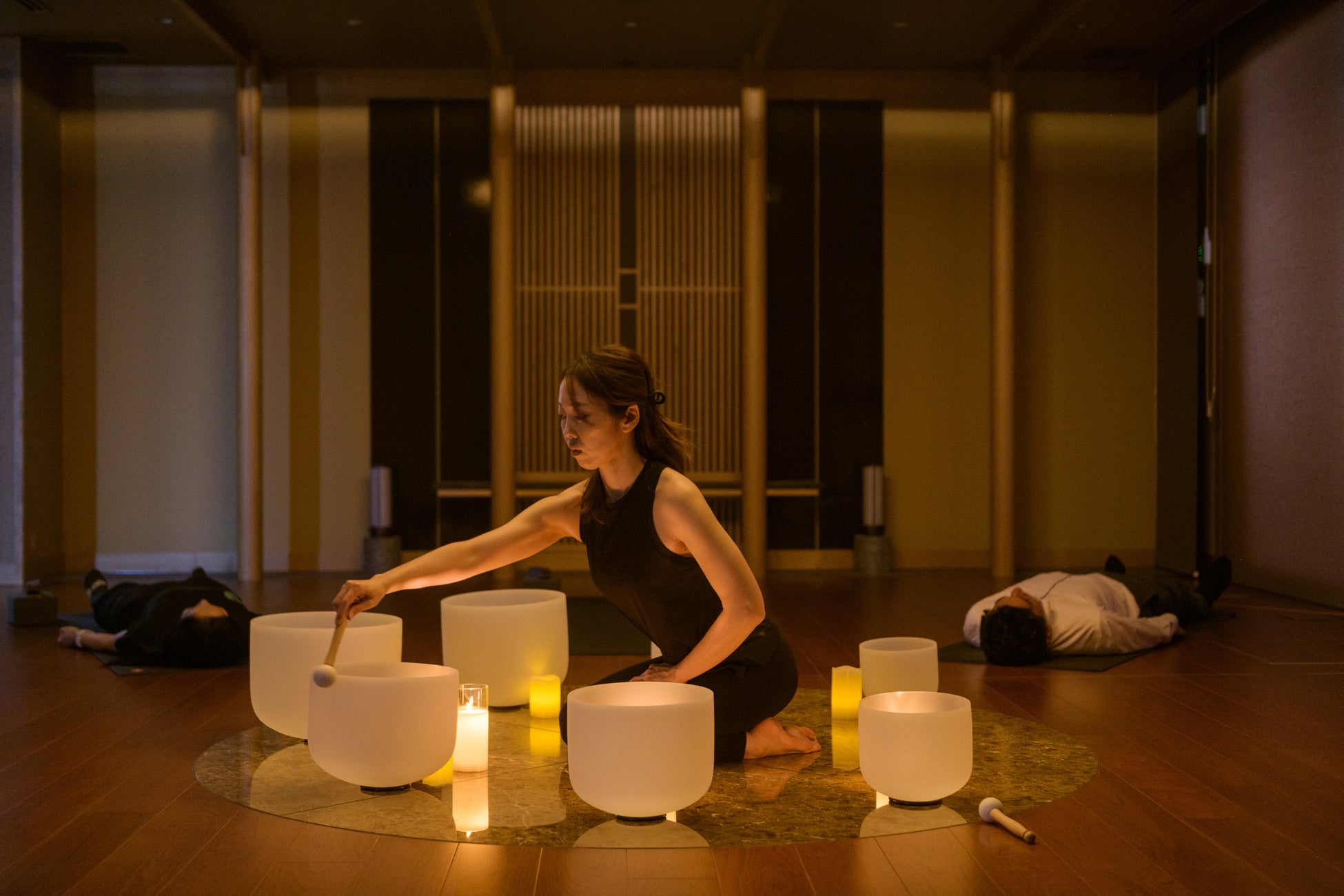 ゆったりとした呼吸で身体に意識を行き渡らせながら血流や自律神経を整え深い眠りへといざなっていきます。より深いリラックスや自然な眠りに導くために、呼吸法や瞑想、クリスタルボウルによるサウンドヒーリングが禅をイメージした落ち着いた空間で受けられます。