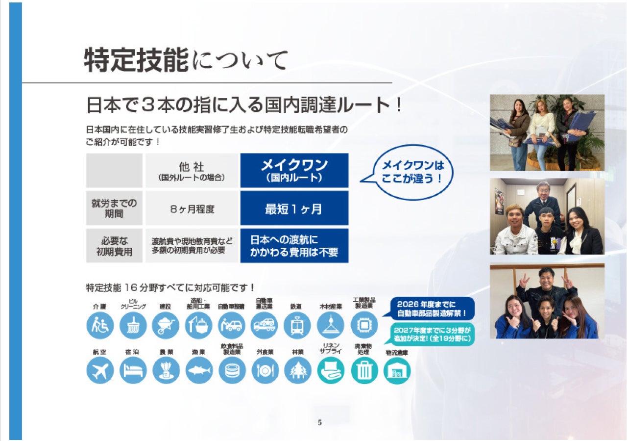 日本国内からの特定技能人材転職支援サービスを行う 株式会社メイクワン