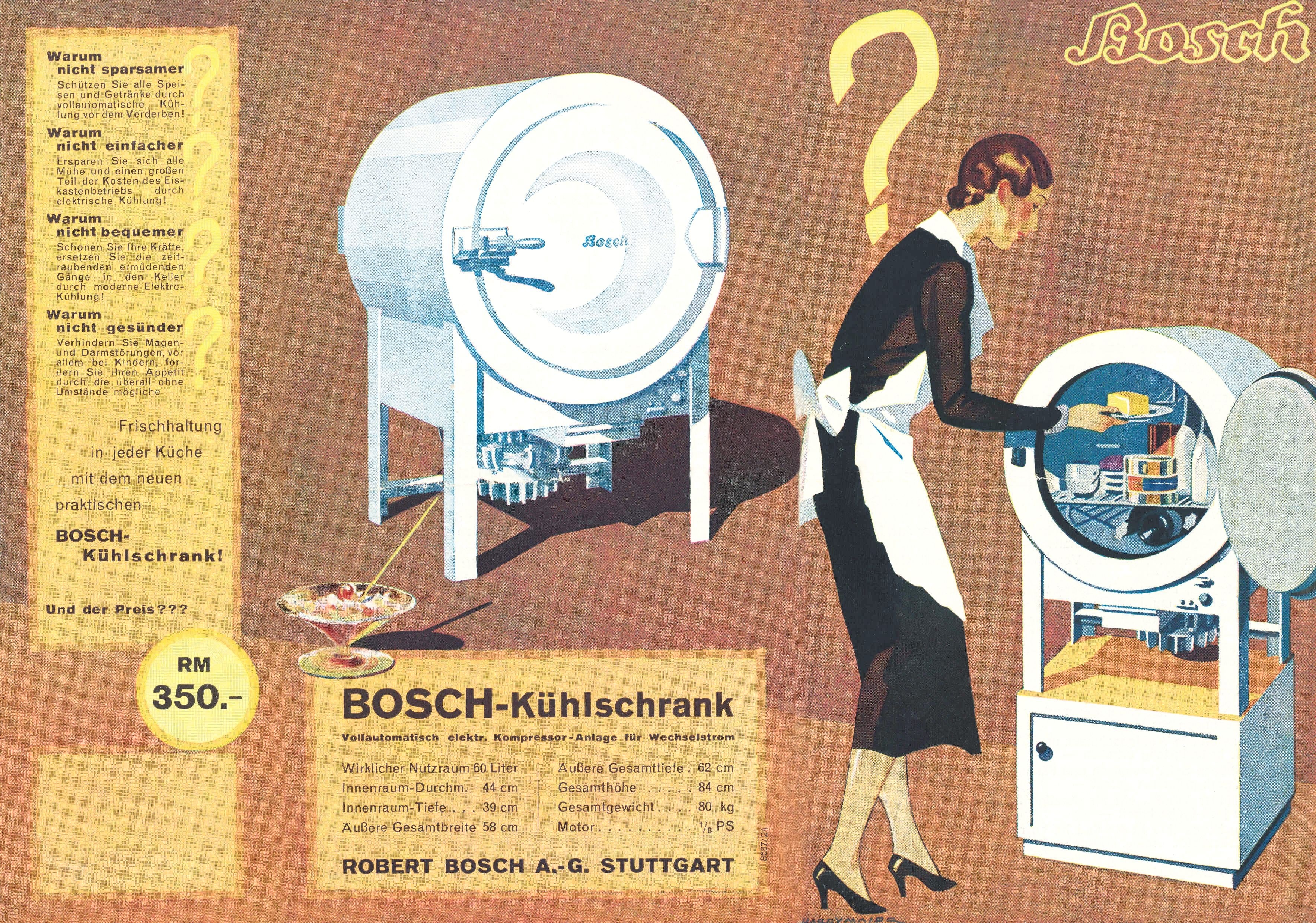 1933年に発表された、ボッシュ初の家電製品「電気式冷蔵庫」