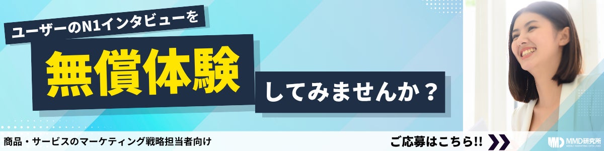 そこでMMD研究所では、これらの課題解決のお手伝いとして、弊社の質の高い定性調査(N1インタビュー)を一度お試しできる無償体験の機会をご用意いたしました。熟練のモデレーターによるインタビューで、お客様の本音を引き出し、価値ある洞察を得るお手伝いをいたします。