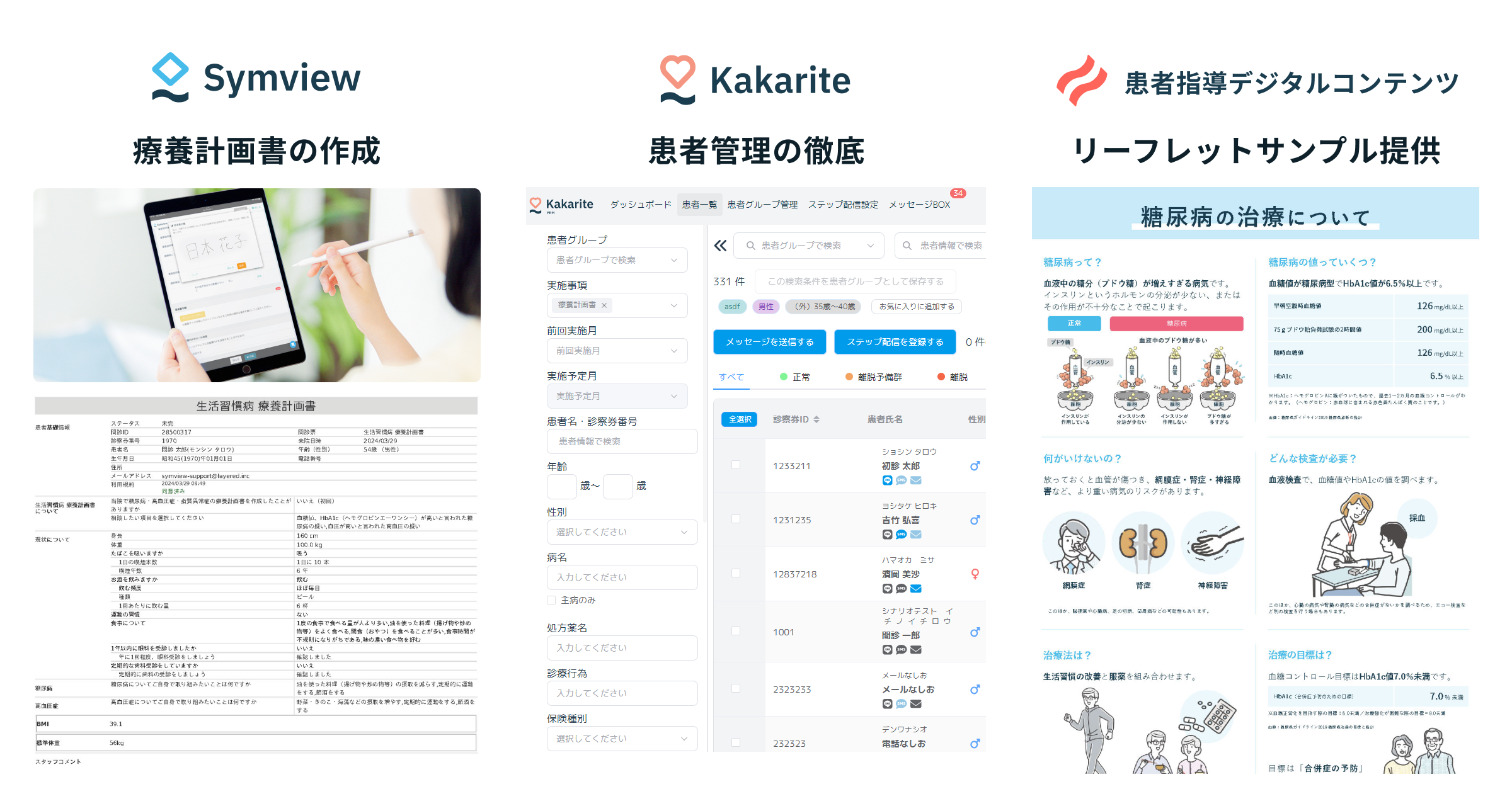 4月1日から正式販売開始するPRM(患者管理システム)Kakariteと、WEB問診Symviewの電子同意書機能を活用し、生活習慣病に対する丁寧な患者説明と指導を支援