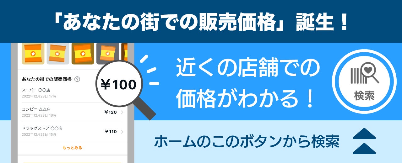新機能「あなたの街での販売価格」誕生!生活圏内の店舗でいくらで売っているか分かります。