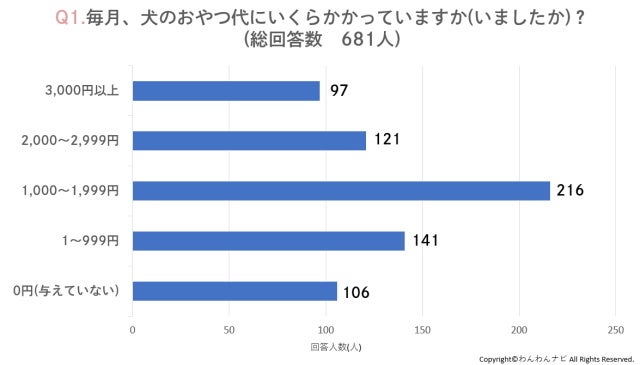 - 毎月、犬のおやつ代にいくらかかっていますか(いましたか)?