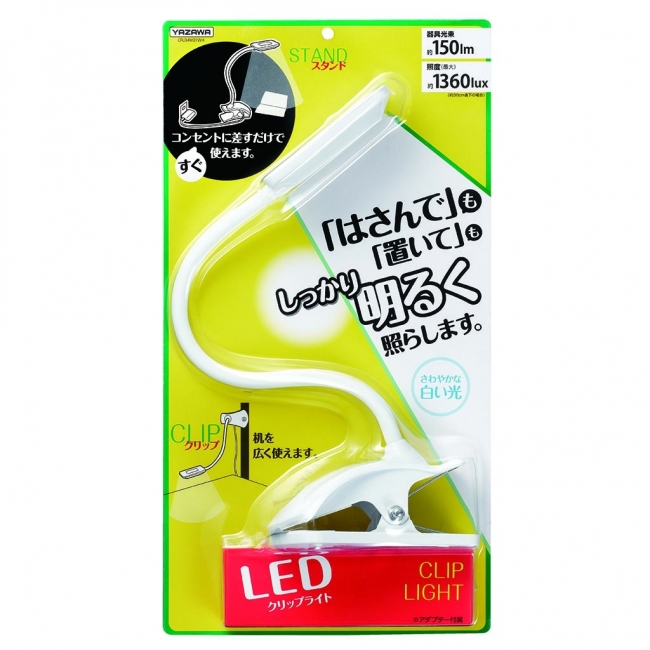 デスクスタンドとして置いて使用する。 棚や柱などに挟んでクリップライトとして使用する。