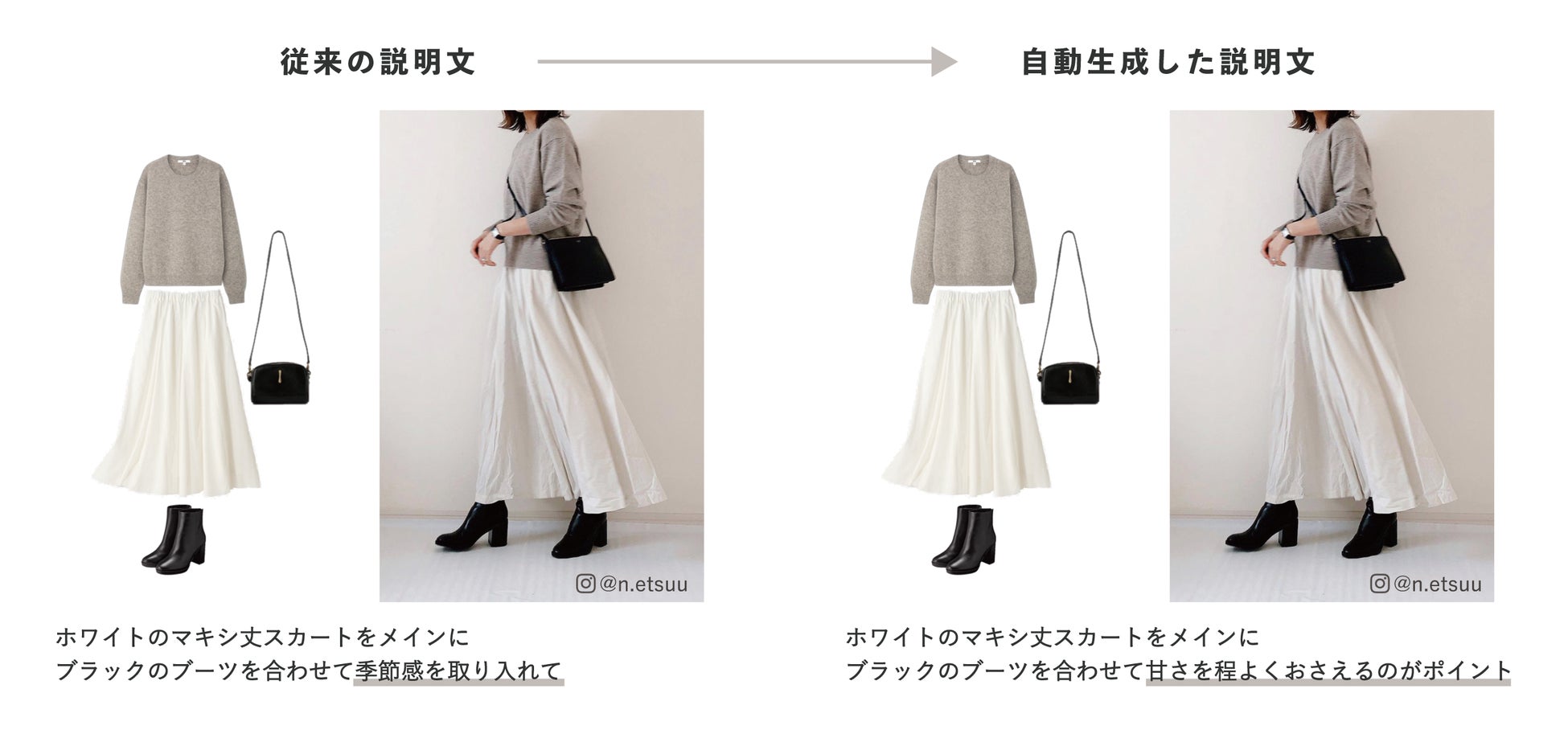 - コーディネート説明文を自動生成!従来より豊富なバリエーションの説明文を生成可能に
