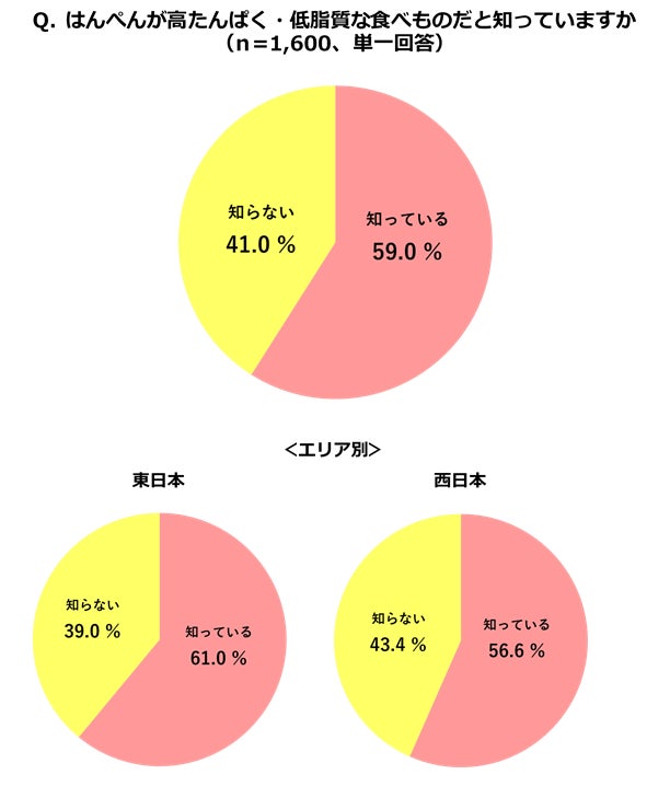 そこで今回紀文では、事前調査で「はんぺんを知っている」と回答した全国8エリアの20代~60代以上の女性1,600人を対象に、はんぺんに関する調査を実施しました。その結果を発表します。