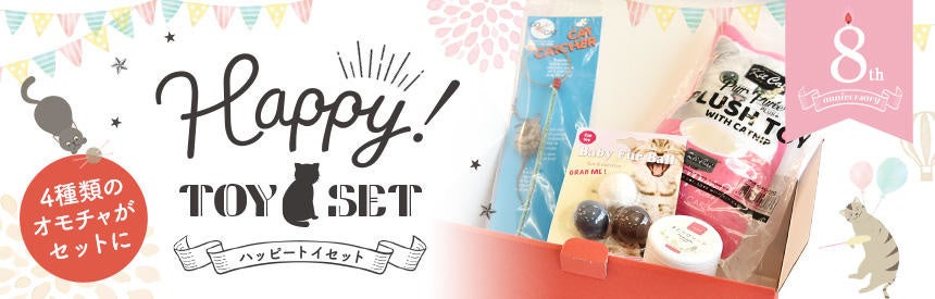 プレミアムキャットフード専門店・通販「たまのおねだり(tama)」(運営:マーケティングパートナー株式会社、本社所在地:東京都新宿区、代表取締役社長:権田真司、Tel:03-6772-8194)は、4月22日に創業8周年を迎えるのを記念し、様々なタイプのオモチャ(4種類)を集めたお得な特別セット「ハッピートイセット」を4月8日よりを販売開始しました。(数量限定品のため、リリース時に完売している場合がありますので、ご注意ください。)