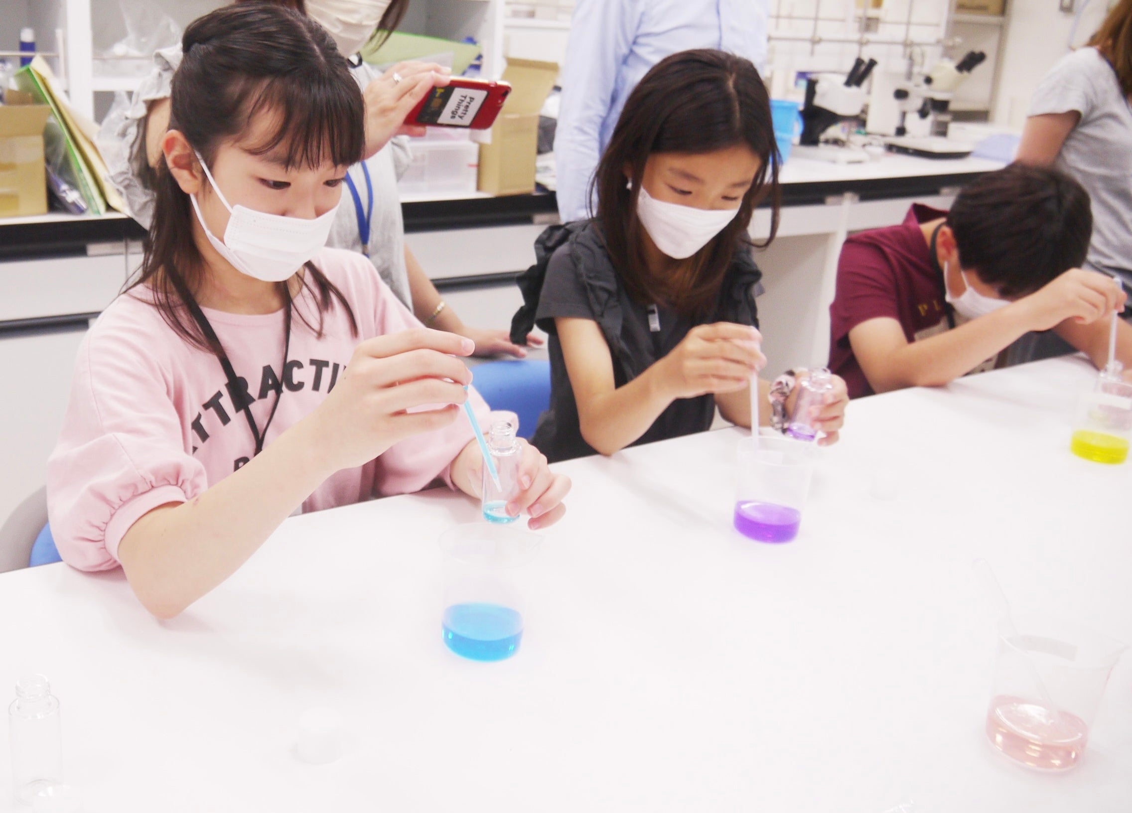 第二部「わくわく科学教室」では、研究所に移動して「かがくの先生」役の研究員と一緒に科学の不思議を体験しました。