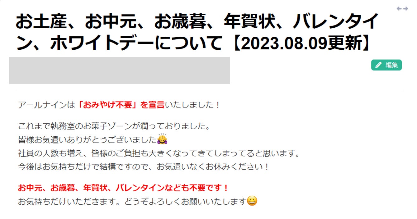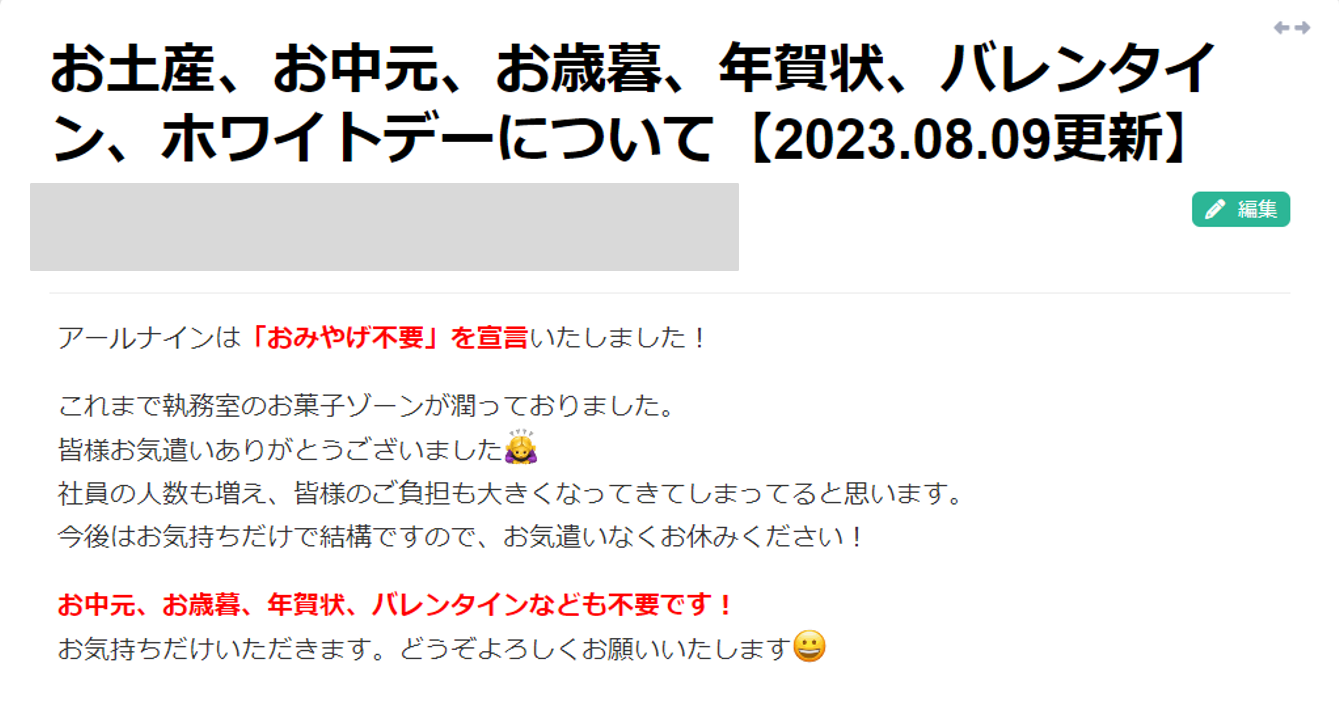 当社はもともと、休暇終わりにお菓子の山ができるほどお土産文化の盛んな会社でした。しかし直近1年半で社員数が倍増し金銭的にもお土産の負担が大きくなっていることを踏まえ、会社として正式に「辞退の意」を表明することにしました。