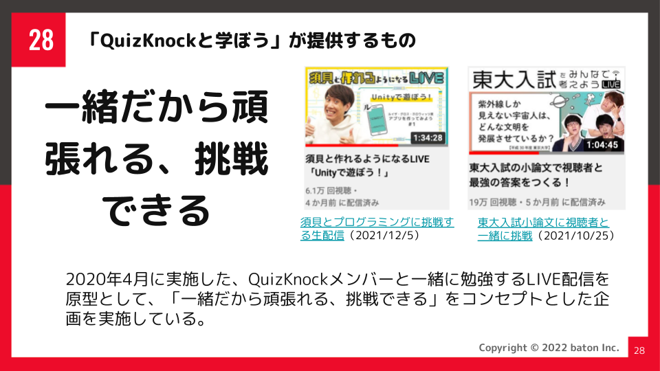 ・勉強LIVE:QuizKnockメンバーと一緒に学びの習慣を作っていくための配信(週2回)