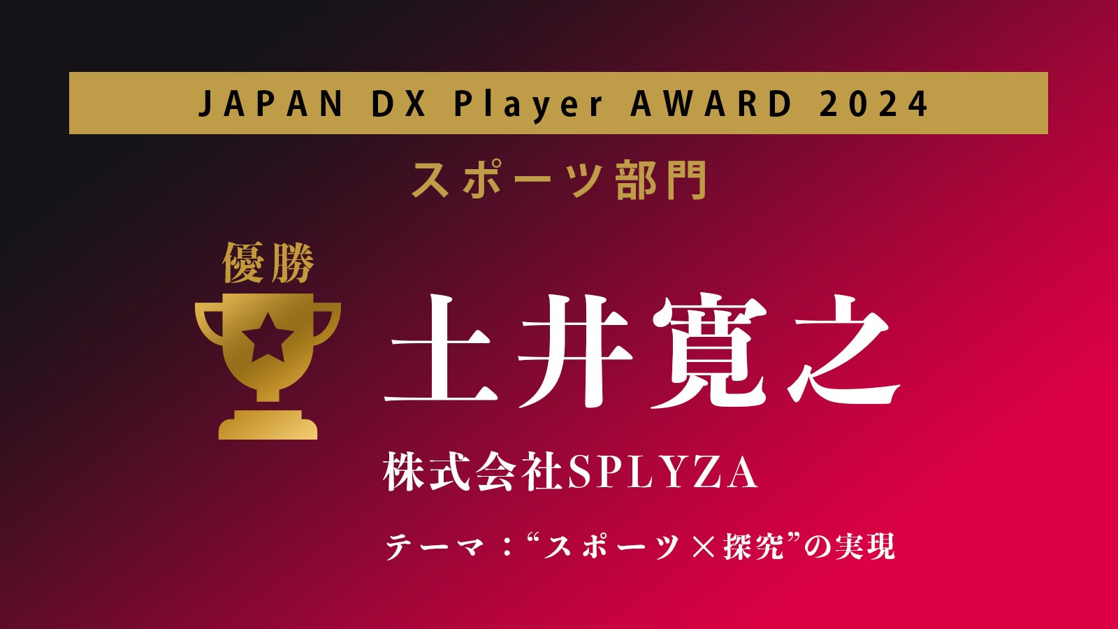 アプリケーション開発で「スポーツ×教育×ヘルスケア」の支援を行う株式会社SPLYZA(所在地:静岡県浜松市、代表取締役:土井 寛之)は、一般社団法人デジタル田園都市国家構想応援団が主催する、JAPAN DX Player AWARD2024「スポーツ部門」*にて優勝しました。
